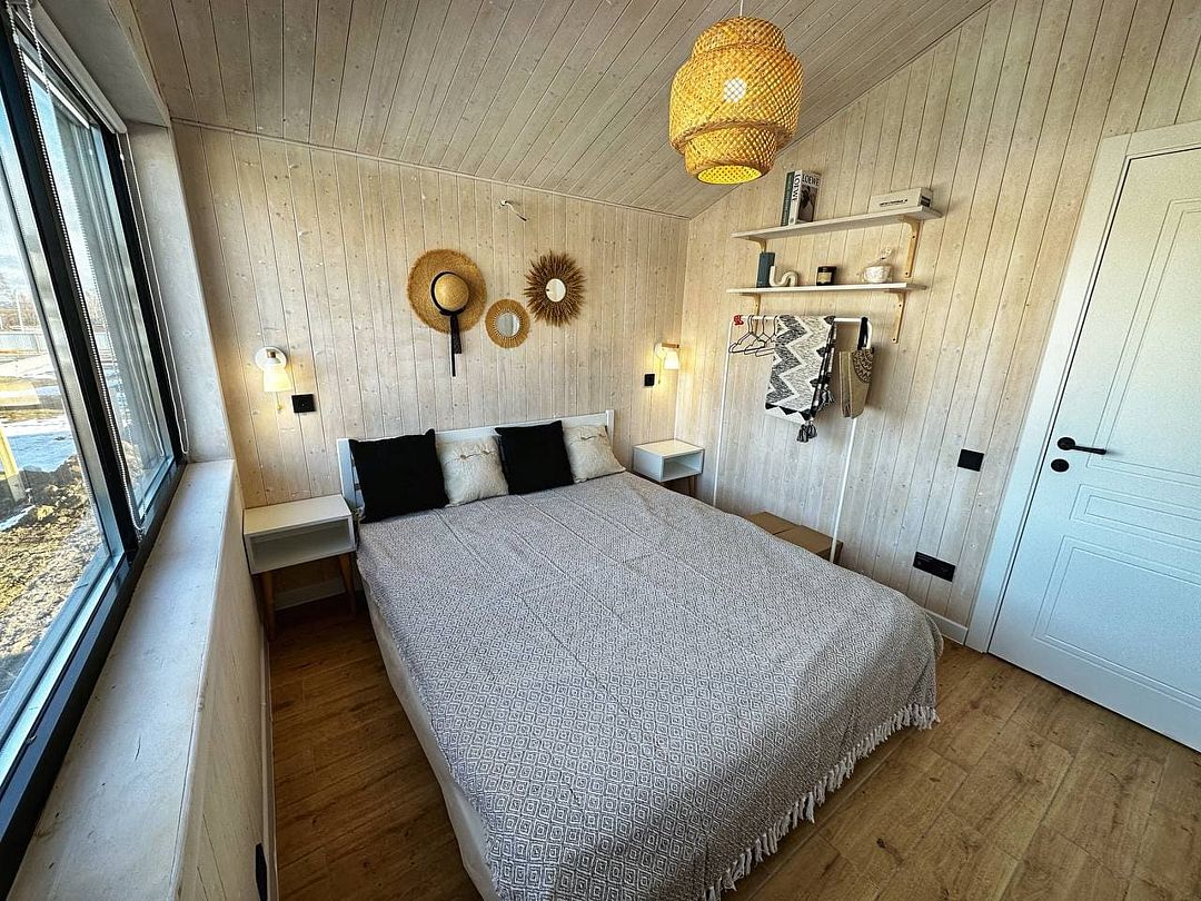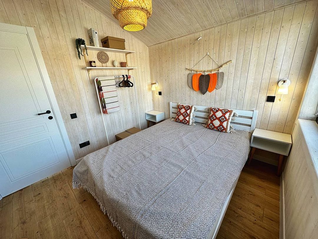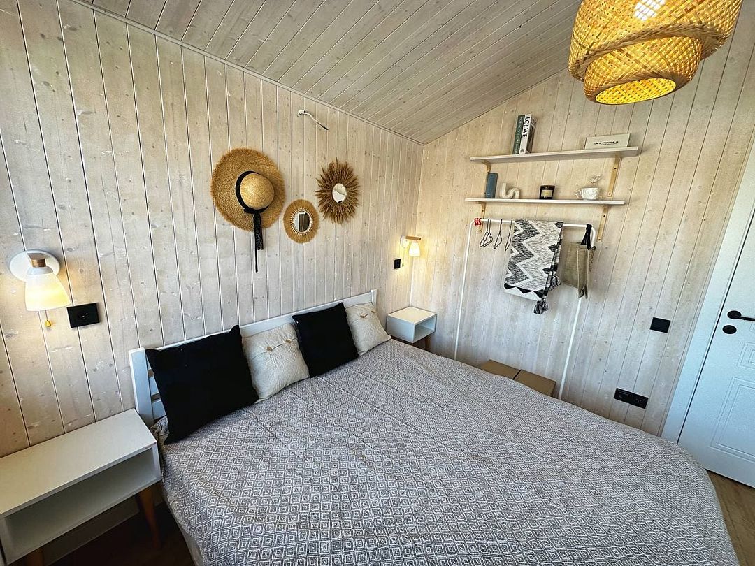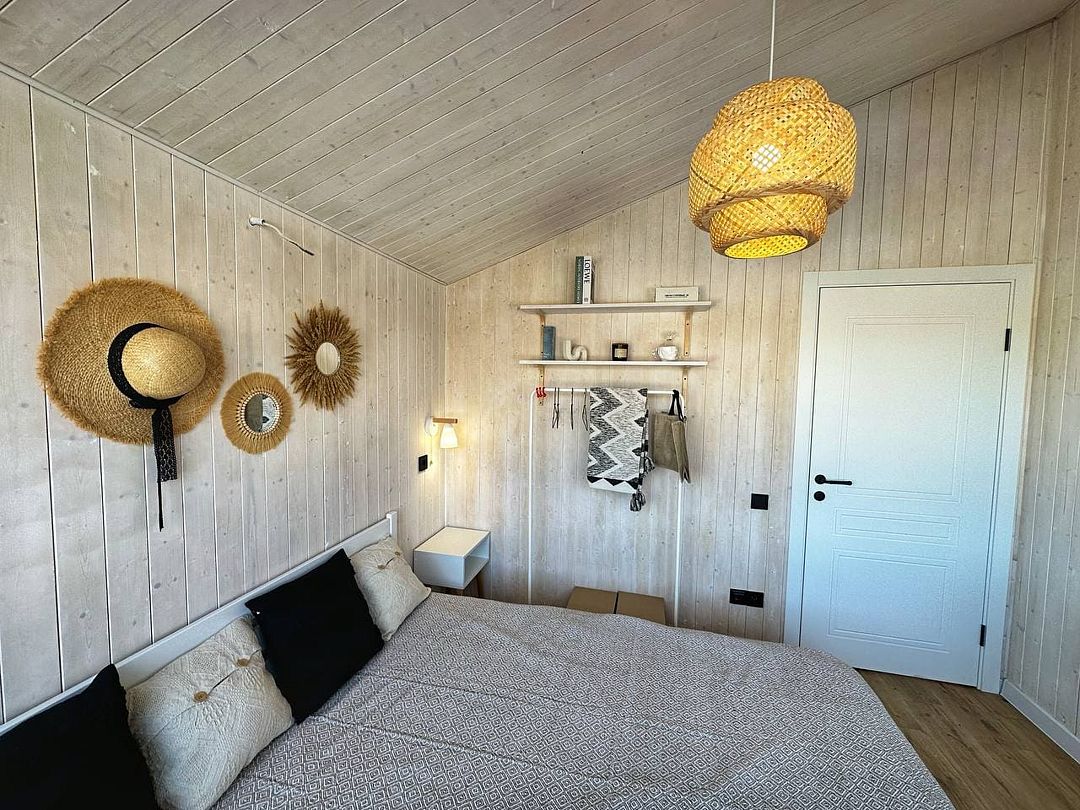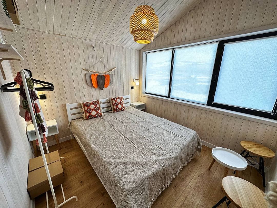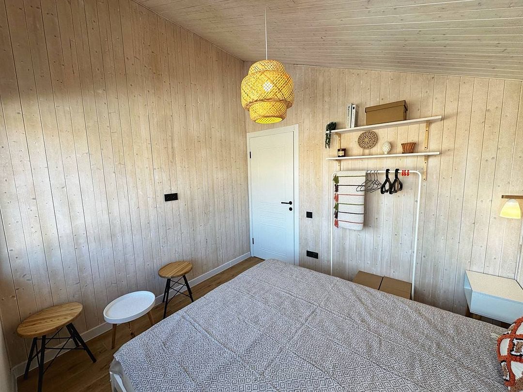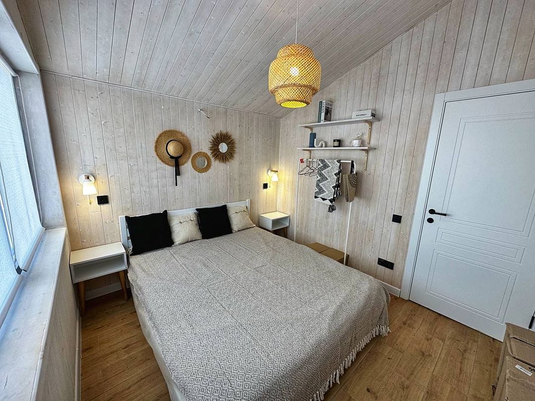 Одноэтажный светлый и уютный домик для отдыха с просторной гостиной. В доме две изолированные спальни, гостиная, обеденная зона, кухня, а так же санузел с душевой. Имеется вся необходимая техника и посуда для вашего комфортного отдыха.