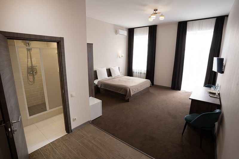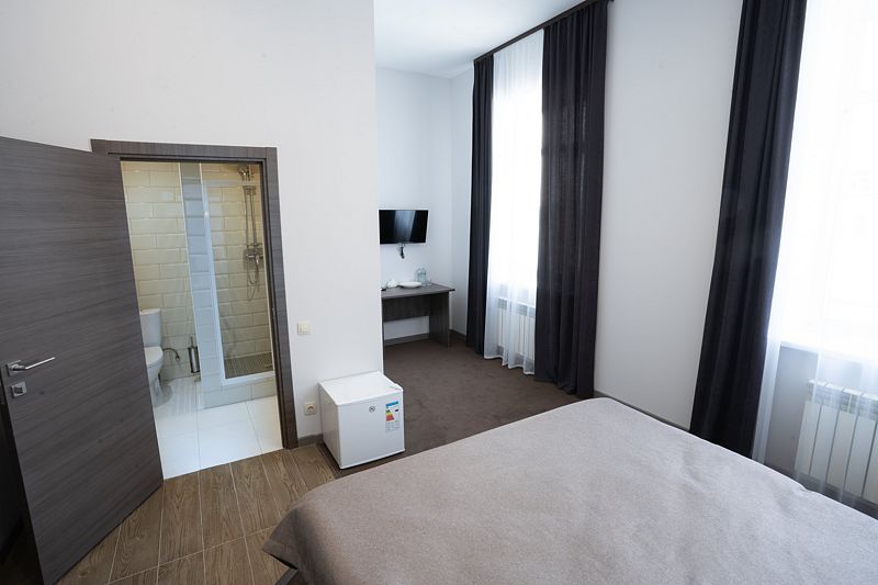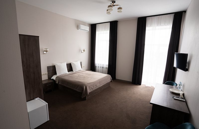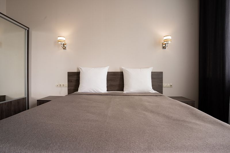 Номера с балконом и без него. Удобства: сплит-система, плазменная панель, душ, туалет, фен, косметический набор, комплект полотенец 3 шт./чел., холодильник.