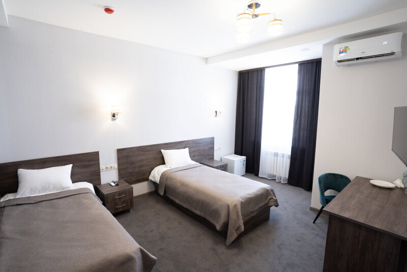 Номера с балконом и без балкона. Удобства: сплит-система, плазменная панель, душ, туалет, фен, косметический набор, комплект полотенец 3 шт./чел., холодильник.