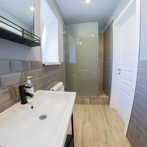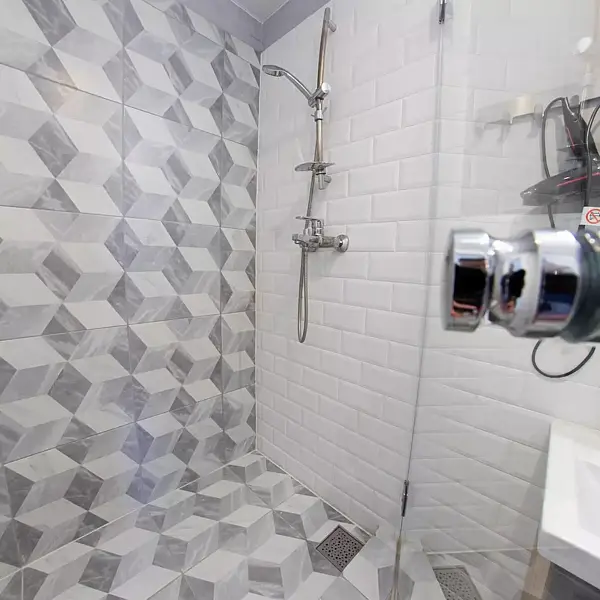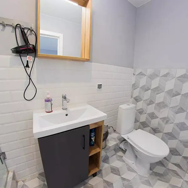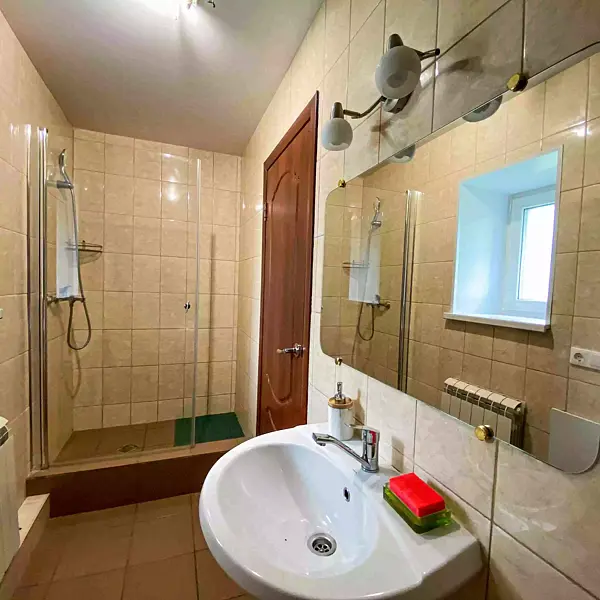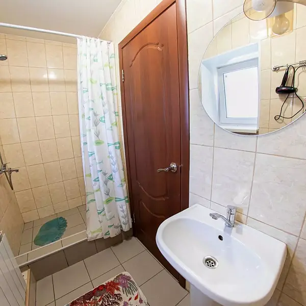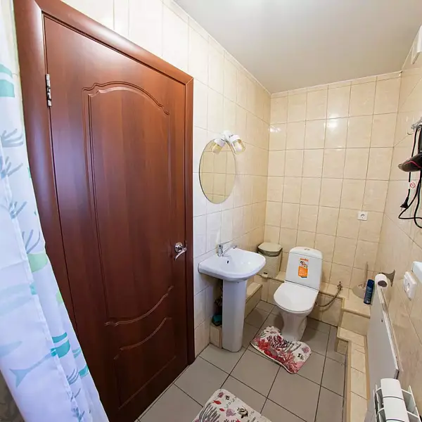 - индивидуальный санузел: душ, туалет. Прозрачная стенка между душем и комнатой;