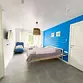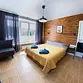 - большая двуспальная кровать, столик со стульями, телевизор, стеллаж, кресло-кровать;