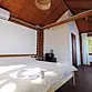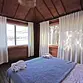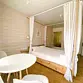 - большая двуспальная кровать с романтичным балдахином и фонариками, столик со стульями, телевизор, стеллаж;