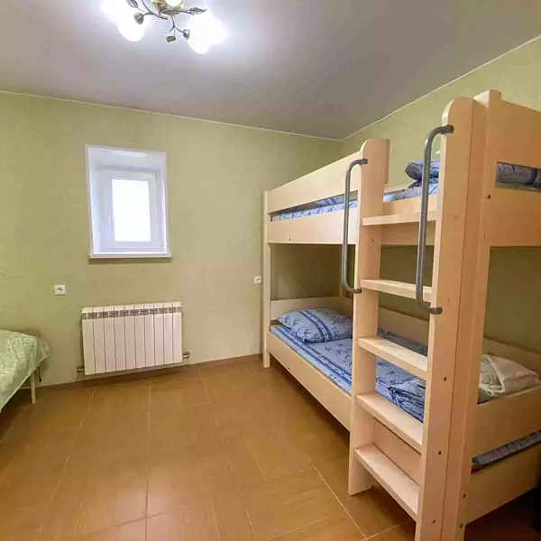 - третья комната с двухъярусной кроватью (внизу двухъярусной двуспальная кровать, вверху односпальная), односпальная кровать;