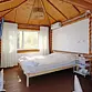 Это домик с тремя изолированными спальнями, рассчитанный на 7-8 человек.