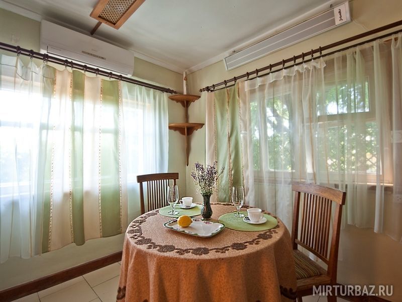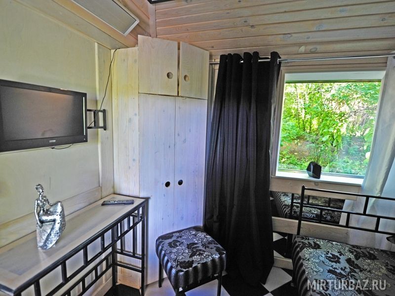 Гостевой дом «Морской» состоит из двух комнат, рассчитан на проживание 4 - 8 человек. Морской стиль в его интерьере ассоциируется с морем, свежестью и прибрежным ландшафтом. Отделка комнат напоминает оформление кают на яхтах и кораблях, поэтому отличается простотой и лаконичностью.
