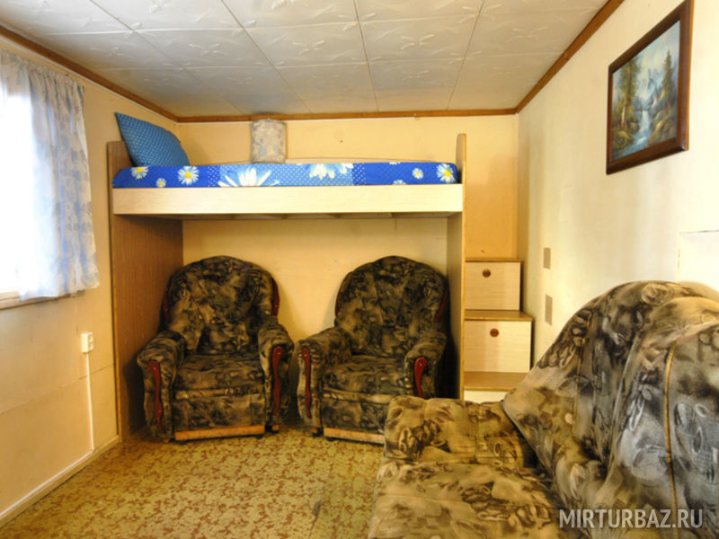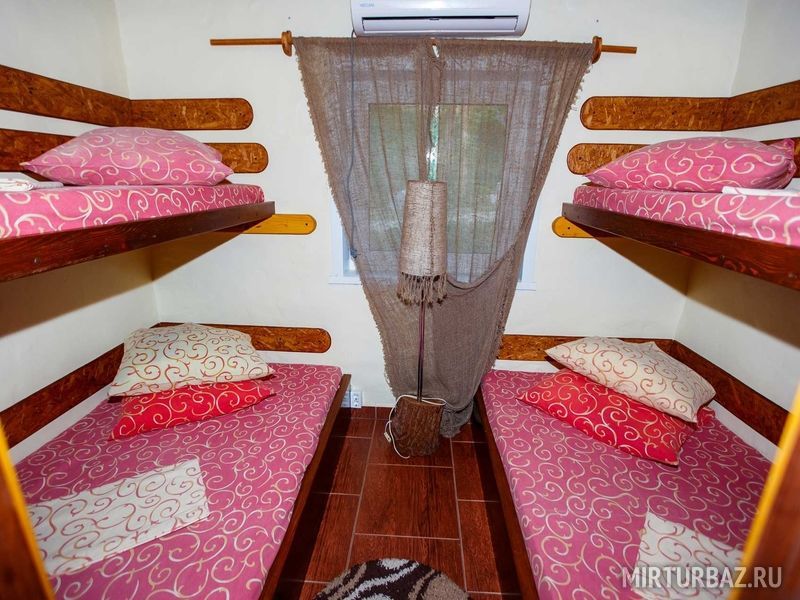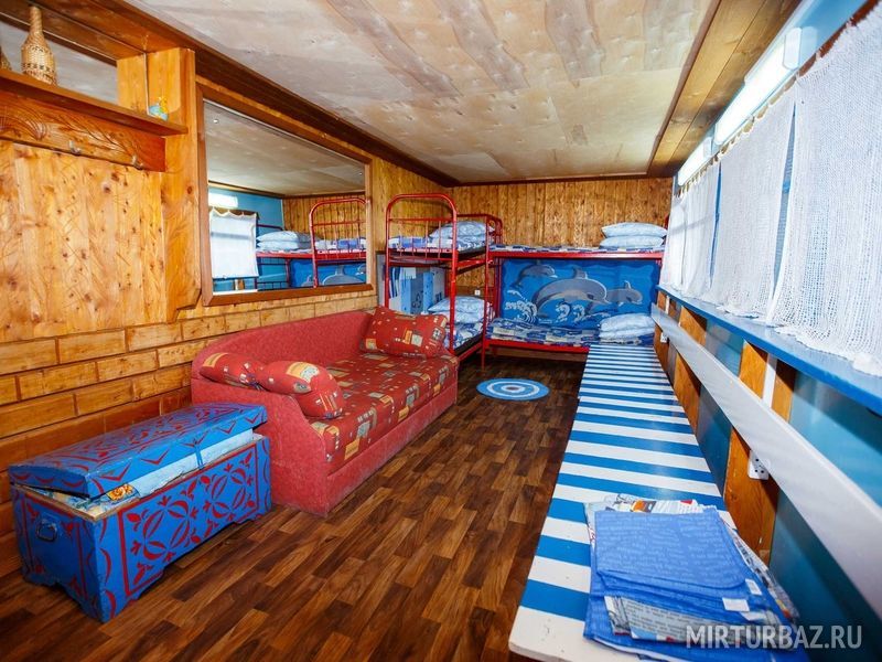 - Гостиная (кубрик) с двумя двухъярусными односпальными кроватями, двумя кушетками, двуспальным диваном.