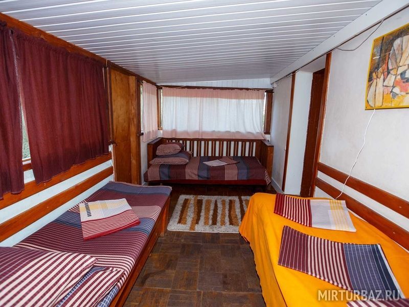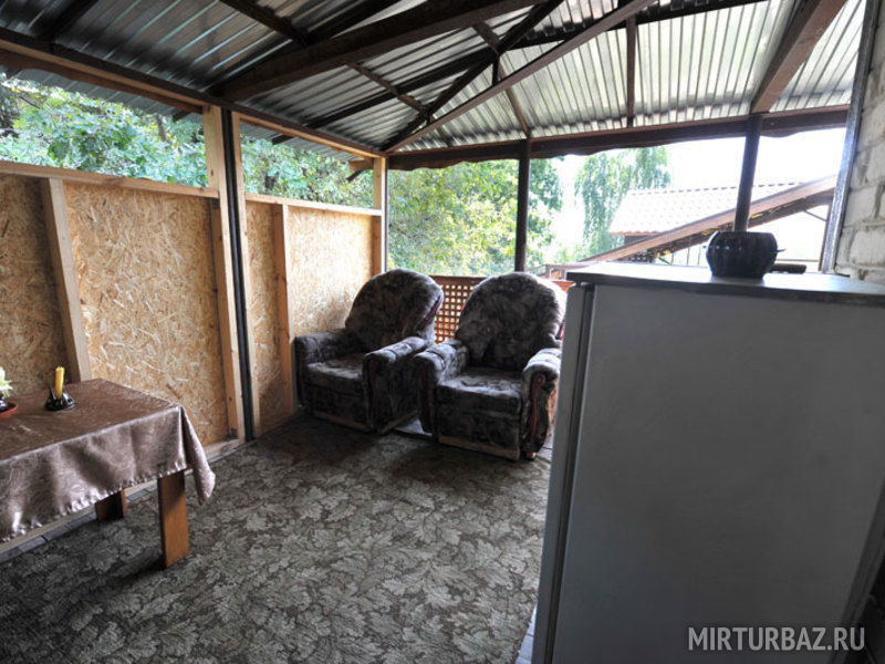 Две спальные комнаты, кухня, большая веранда, на которой в одной стороне стол, два кресла, скамья.