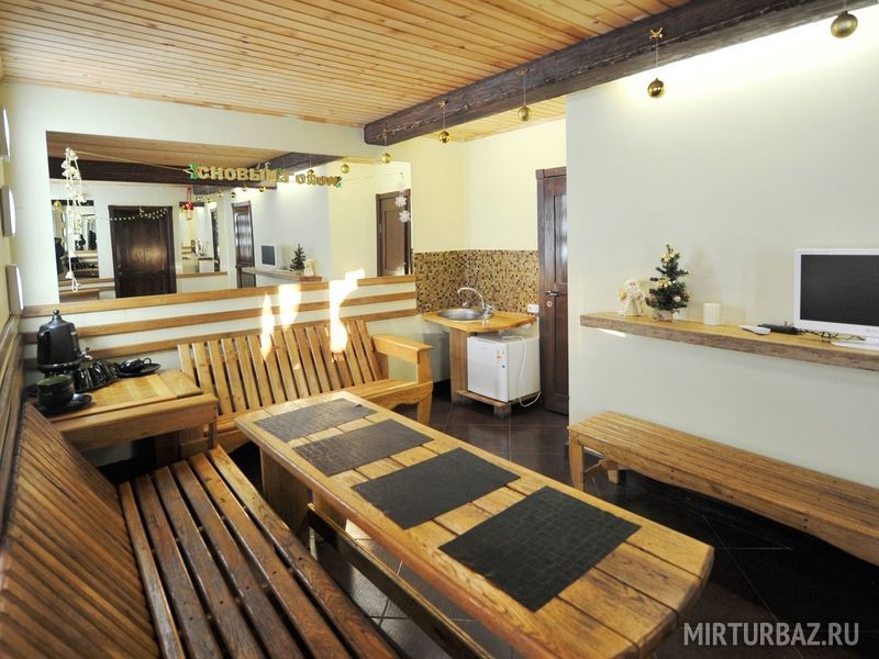 Читать полностьюВ большой гостиной "Сказки" легко разместится компания до 30 человек, удобная деревянная мебель, интерьер в "охотничьем" стиле, санузел в помещении. Площадка рядом с гостиной позволяет перенести действие на свежий воздух и значительно увеличить количество гостей. Широкие столы, скамьи, деревянные кресла, большой мангал, качели, место для танцев (выступлений, презентаций и т.п.) Деревья и кустарники создают тень, даже в жару здесь комфортно. Это место отдыха находится в дали от коттеджей и игровых площадок, идеально для большой компании.