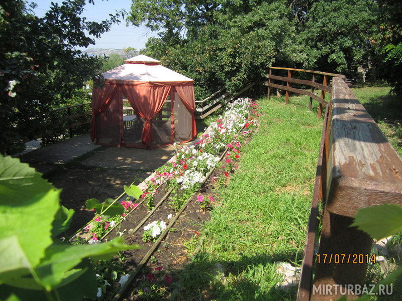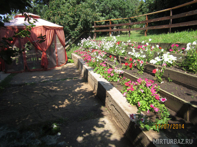 Читать полностьюНазвали место так, потому что когда-то посадили здесь малину. Но то ли малина оказалась не та, то ли место это не подходило для ее роста и плодоношения, в общем, малина там не выросла, а название осталось - полюбилось и нам, и отдыхающим. Малиновую площадку украшает красный шатер, в котором легко размещаются 8-10 человек, на ярусных клумбах - яркие петуньи малиново-розовых тонов. Развесистый клен притеняет это солнечное место. Найти Малиновую площадку легко: спускаясь по Драконовой лестнице, посмотрите направо и войдите в калитку.