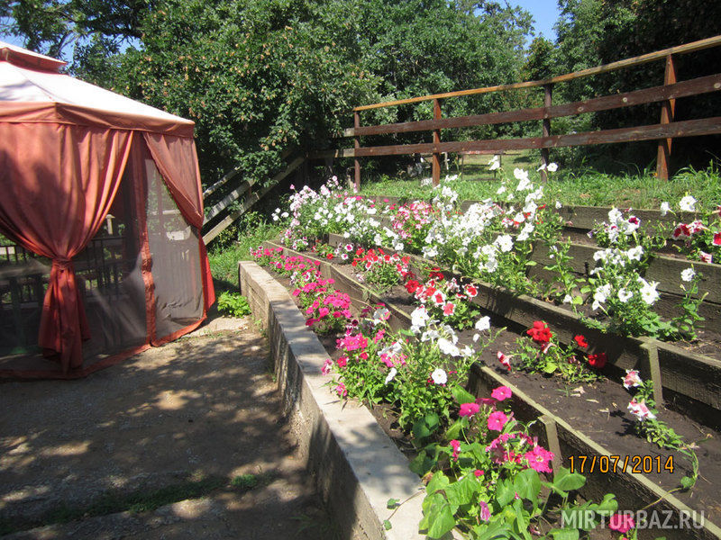 Назвали место так, потому что когда-то посадили здесь малину. Но то ли малина оказалась не та, то ли место это не подходило для ее роста и плодоношения, в общем, малина там не выросла, а название осталось - полюбилось и нам, и отдыхающим. Малиновую площадку украшает красный шатер, в котором легко размещаются 8-10 человек, на ярусных клумбах - яркие петуньи малиново-розовых тонов. Развесистый клен притеняет это солнечное место. Найти Малиновую площадку легко: спускаясь по Драконовой лестнице, посмотрите направо и войдите в калитку.