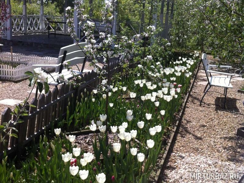 Белая беседка - место, где живет ветерок! Здесь прохладно даже в самый знойный день. Белоснежные деревянные решетки создают романтический настрой, служат прекрасным фоном для фотосессий. Спускаясь по центральной лестнице Усадьбы, в первую очередь, видишь именно белую беседку. Слева - рокарий, справа - фруктовый сад. Пройдя по гравийной дорожке мимо качелей, попадаешь в гостеприимно ждущую белую беседку. Здесь можно организовать любое мероприятие для компании от 12 до 30 человек. Рядом - мангал, бассейн с живыми рыбками, игровые площадки.