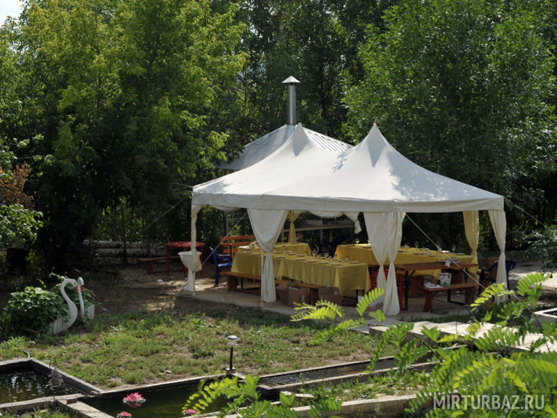 Читать полностьюБелый шатер - центральное место отдыха Усадьбы "Сказка", расположен на поляне Дружбы. Рядом - игровые площадки, детский домик с горкой, зона отдыха с каскадным бассейном и гравийным садом. За шатром расположено крытое место для приготовления шашлыков, барбекю, плова, умывальник с большой столешницей, электрокоммуникации. Способен разместить компанию до 40 человек. Отличное место для проведения любых мероприятий: торжеств, свадеб, юбилеев, корпоративных встреч, детских праздников, игровых программ.