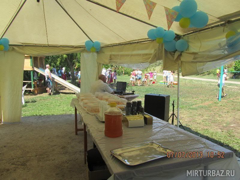 Можно организовать праздник, как в помещении, так и на свежем воздухе. Масса впечатлений, прекрасные площадки для проведения игр, состязаний, конкурсов, свежий воздух, пробуждающий аппетит даже у тех детей, которых невозможно накормить в домашних условиях! А также много сюрпризов и оригинальных решений.