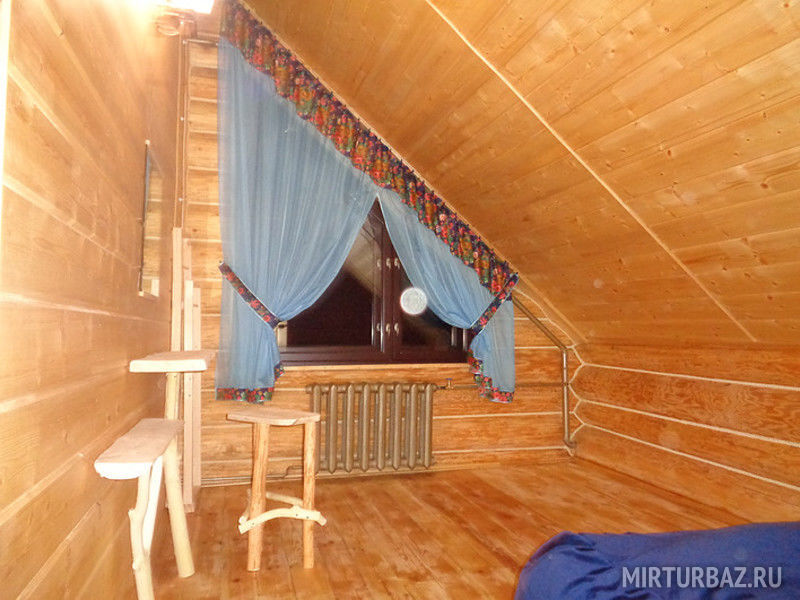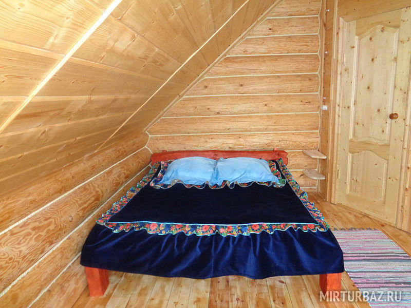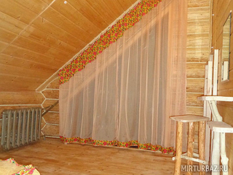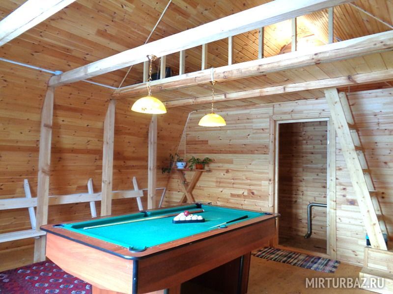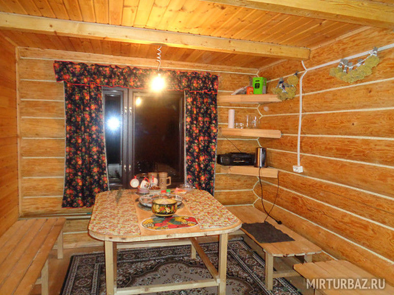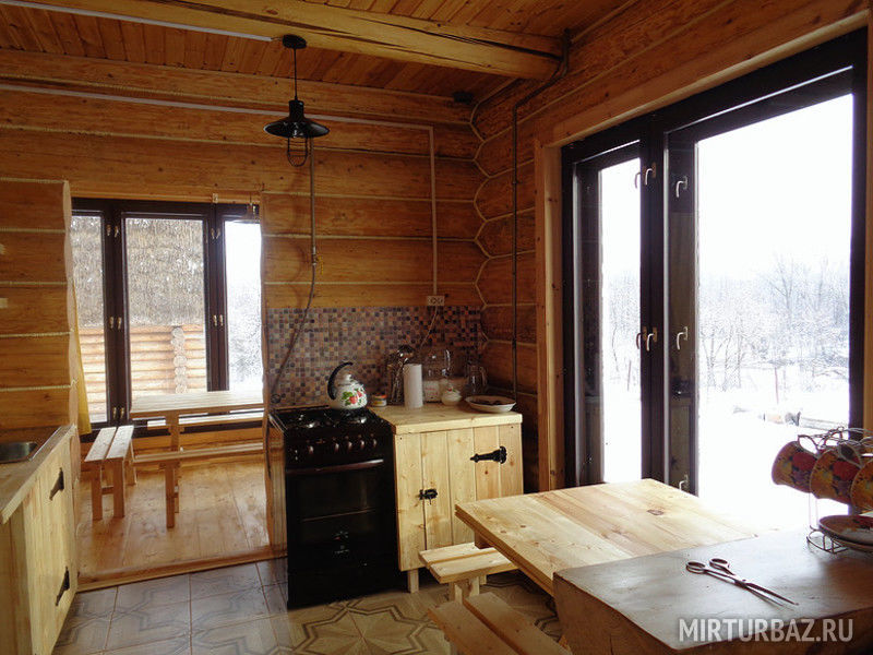 Уютный бревенчатый дом, деревянная мебель. Рассчитан на комфортное проживание 8-14 человек. В доме просторная гостиная, столовая, кухня со всем необходимым для приготовления пищи и сервировки. Четыре комнаты для сна. В комнатах стоят двуспальные кровати, в одной есть раскладной диван, в гостиной диван. Удобства на первом этаже. Холодная и горячая вода, душевая, туалет. Рядом дом-баня с просторным предбанником, удобной парилкой и мыльной, теплым туалетом. На втором этаже баня, бильярдная, «сеновал». На территории беседка с печью, в которой можно не только жарить мясо, печь картошку, но и на плите на дровах сварить вкуснейшую уху, приготовить плов с дымком.