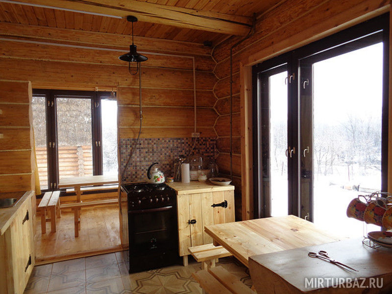Гостевой дом находится с. Лесное, Саратовской области. Уютный бревенчатый дом, деревянная мебель, сделанная руками хозяев. Рассчитан на комфортное проживание 8-14 человек. Построен в деревянном стиле из экологически чистых материалов, весь дом проникнут запахом сосны. В распоряжении гостей просторная гостиная, столовая, кухня со всем необходимым для приготовления пищи и сервировки. Четыре комнаты для сна. Удобства на первом этаже. Холодная и горячая вода, душевая, туалет.