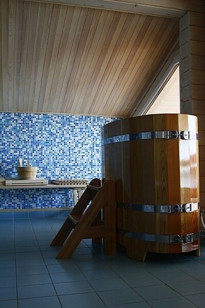 Читать полностьюОтличительной особенностью финской сауны является высокая температура воздуха в парной (90-120 градусов) и низкая влажность (5-20%). Современная финская сауна в " Волжино" оборудована электрообогревательным аппаратом, с помощью которого и создаётся необходимая атмосфера в парной. Суховоздушные бани легче переносятся организмом, чем влажная парная, несмотря на высокую температуру.