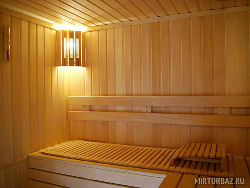 Для каждого гостя в русской бане приготовлены: простыня, банное полотенце, разовые тапочки, гель для душа. На каждый сеанс в русской бане бесплатно предоставляется питьевая бутилированная вода, разнотравный чай и настоящий русский мёд.Финская сауна