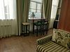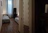 Высота потолков 3,5 метра. В одной комнате находятся 2-х спальная кровать, прикроватные тумбочки, шкаф, на полу — ковролин, кондиционер, в другой комнате — раскладной диван (2-х спальный), телевизор с подключенными цифровыми каналами, мини-холодидльник, на полу — линолеум. Санузел, душевые принадлежности, фен, тапочки.