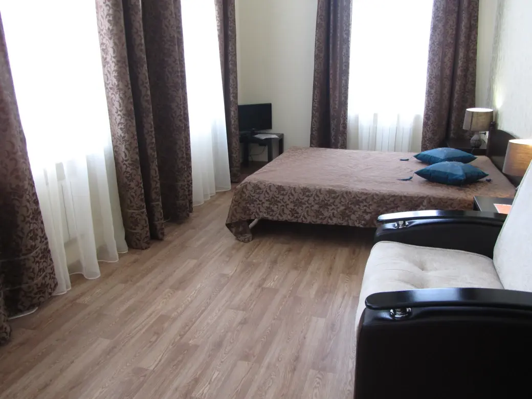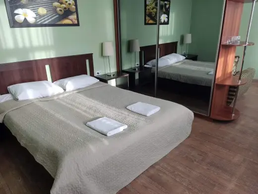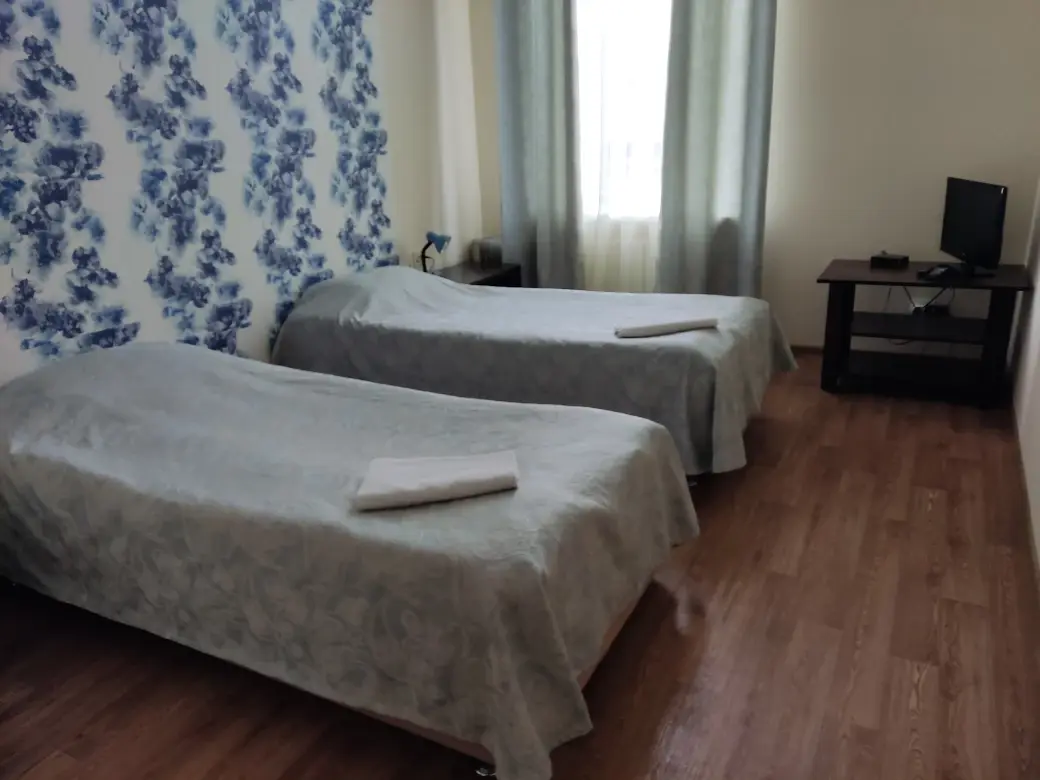 Каждая комната здесь светлая, просторная и продумана до мелочей для вашего комфорта. В номерах есть удобные прикроватные тумбочки, стулья, телевизоры с цифровыми каналами, а также собственные ванные комнаты с горячей и холодной водой и комплектом полотенец.