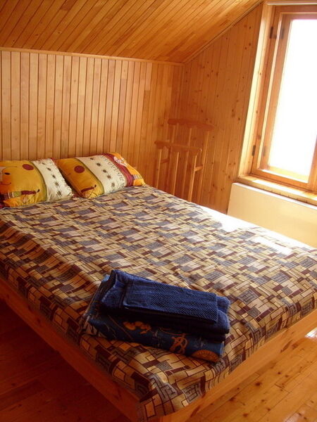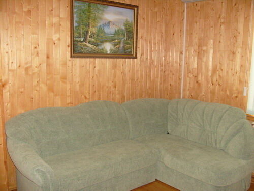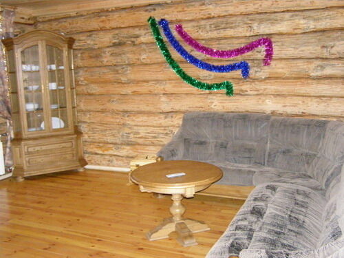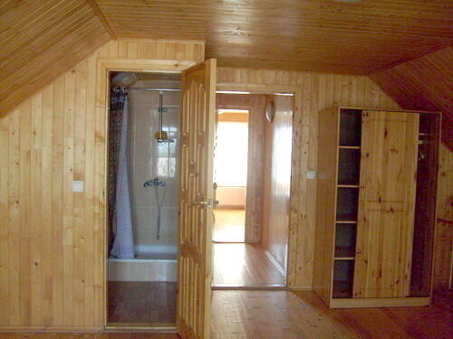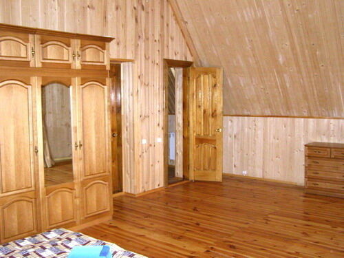 1-й этаж: холл с мягкой мебелью, кухня со всей необходимой посудой, газовая плита, СВЧ печь, холодильник, три номера с удобствами, два из них с санузлом посередине, один с удобствами в номере. 2 этаж: холл с мягкой мебелью, и один номер с удобствами : санузел, туалет умывальник, душ, горячая, холодная вода, двуспальная кровать.