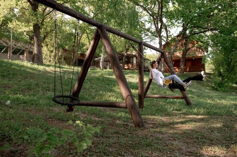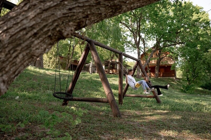 Гости комплекса обеспечены тишиной, покоем и чувством безопасности в окружении пения птиц и шелеста листвы. В отеле предоставляются различные удобства, такие как открытая терраса с открытым очагом и зоной барбекю, баня на дровах, теннисный корт, бильярд, футбольная площадка, пляжный волейбол, веревочный парк, а также возможность организации рыбалки.