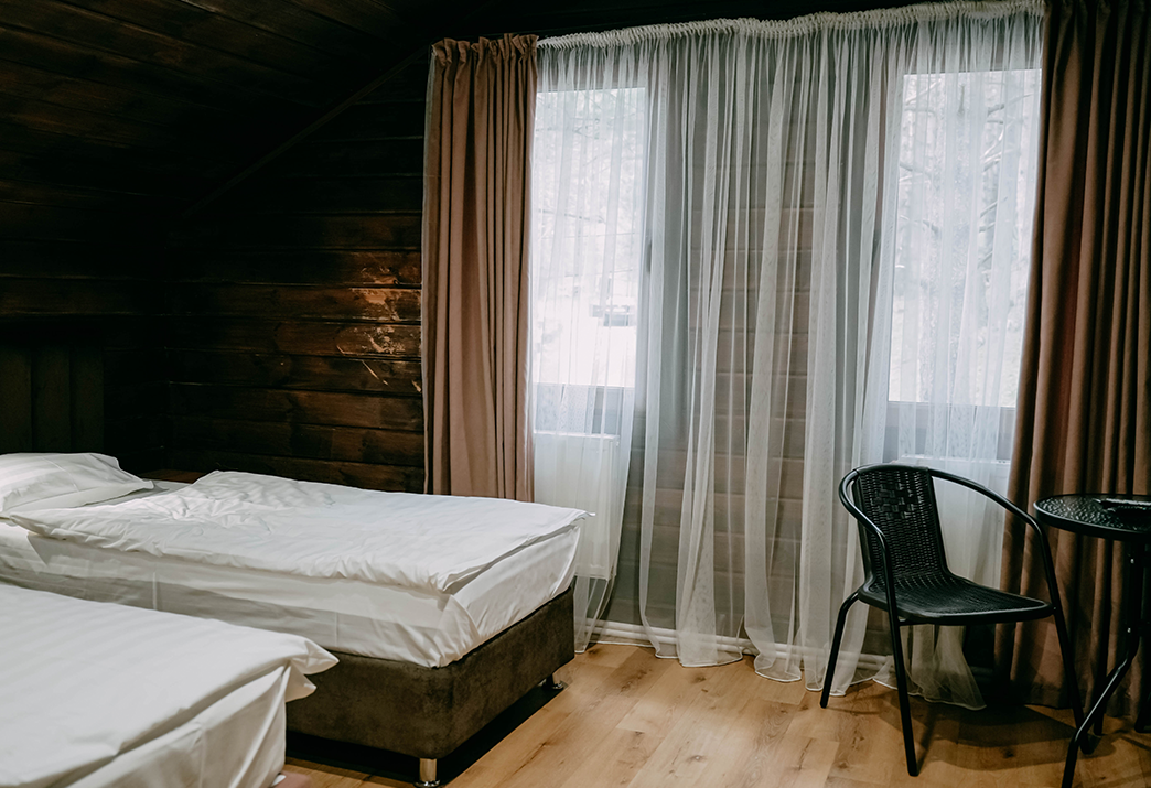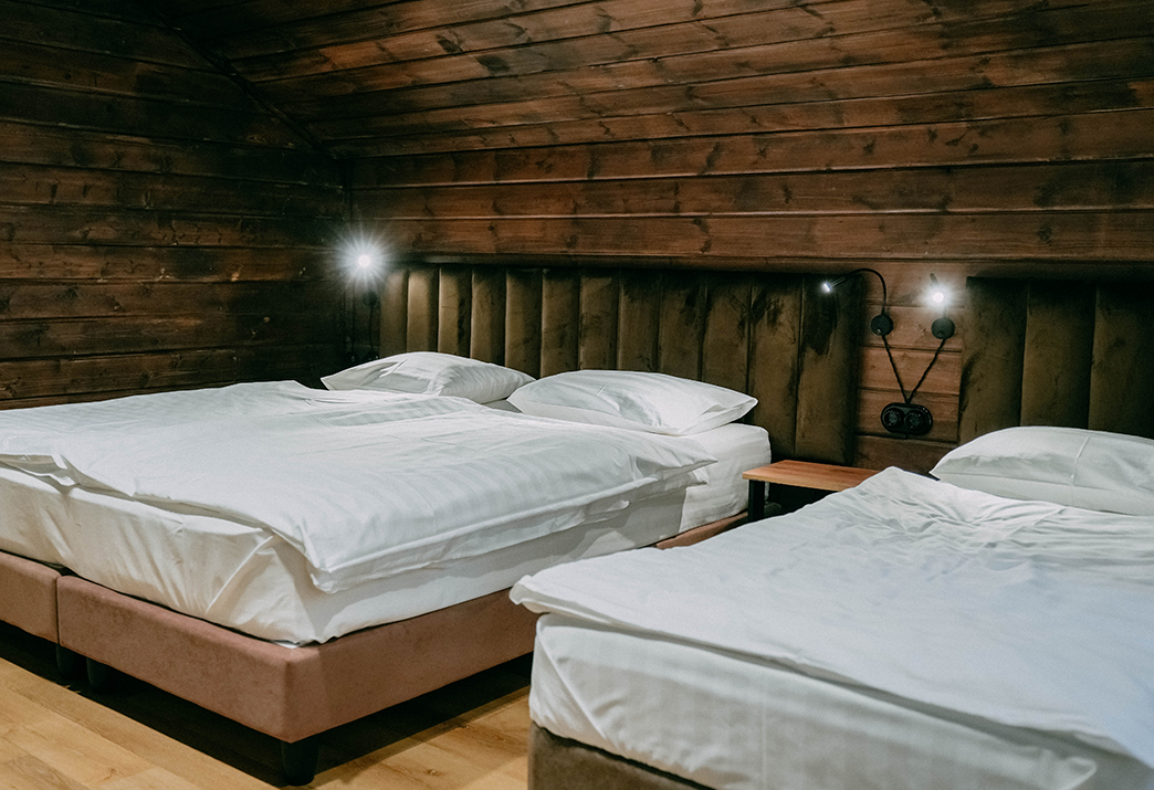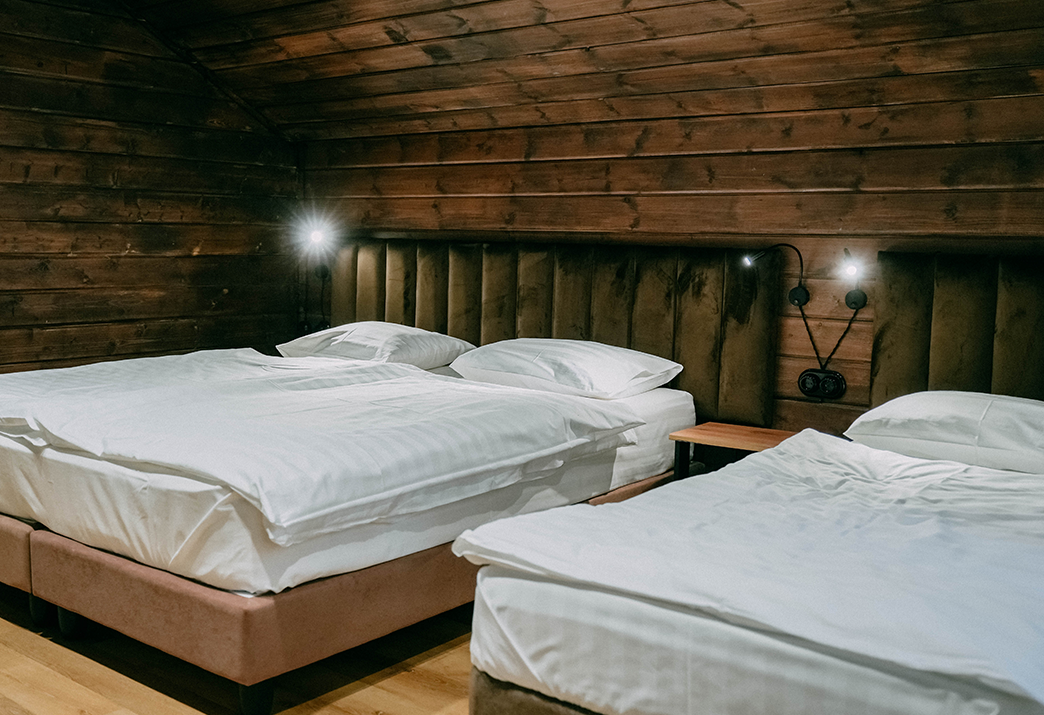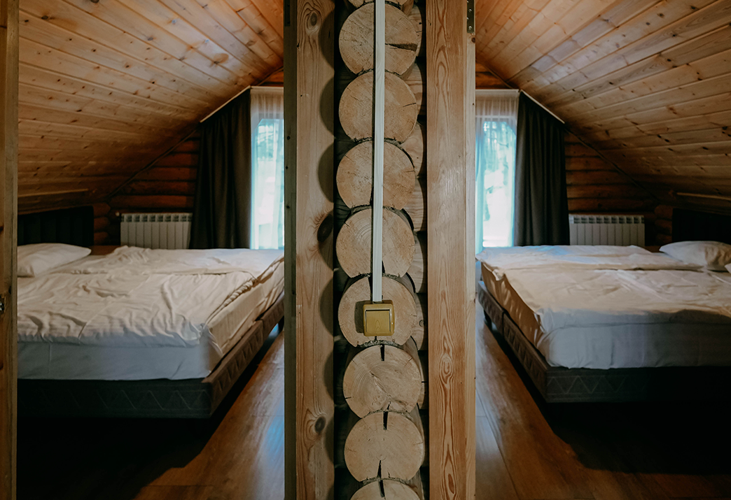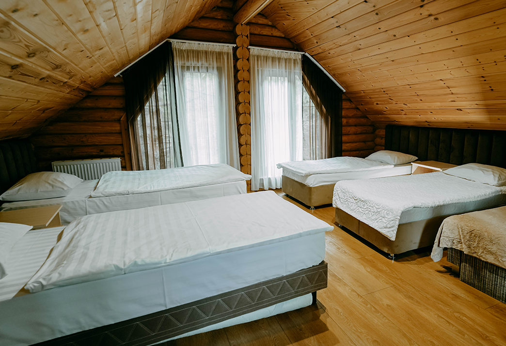 Каждый дом рассчитан на комфортное размещение от 5 до 7 человек. Гостям доступны все необходимые удобства: мангальная зона у домика, где можно жарить шашлык в любое время. В домах есть плазменные телевизоры со спутниковым ТВ, холодильники, чайники, бесплатный Wi-Fi, качественное постельное белье, мягкие махровые полотенца и уютные одеяла — всё новое, приятное на ощупь и с тонким ароматом свежести.