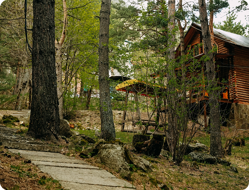 «Panorama Digoria» — это уютные дома из натурального сруба, расположенные в живописном сосновом бору у подножия водопадов «Три сестры».