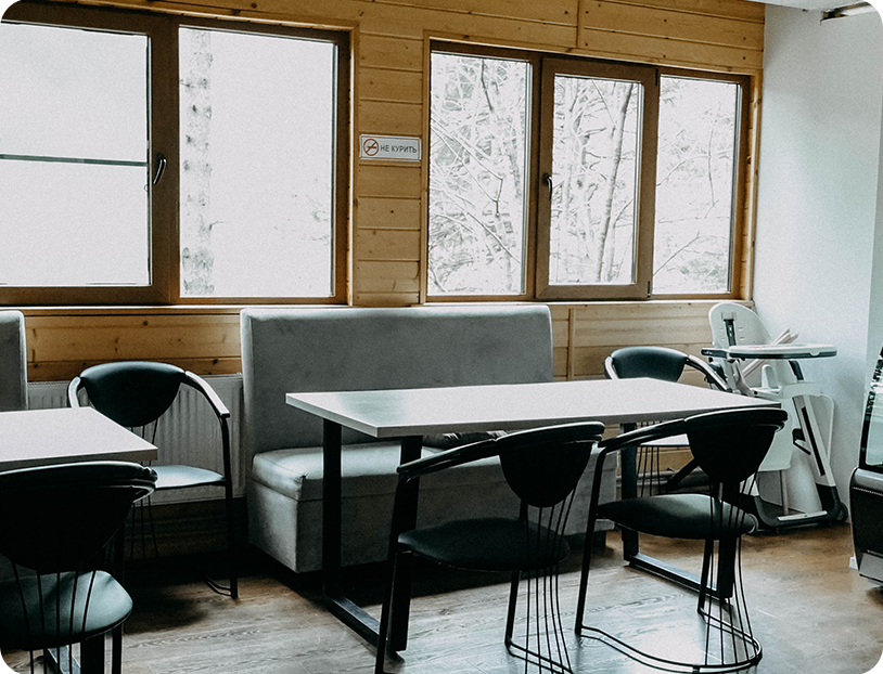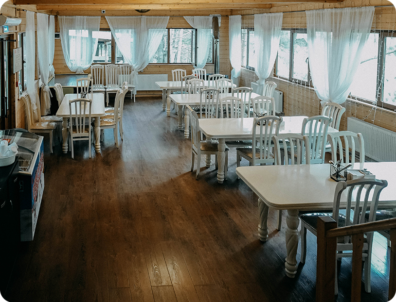 Для гостей работает просторная столовая с вкусным и сытным меню.