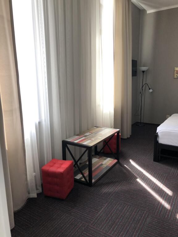 телевизор, кабельное телевидение, Wi-Fi, кондиционер, фен, ванная комната, банные полотенца, две односпальные кровати, вешалки, журнальный столик, зеркало, пуфики, унитаз, раковина, питьевая вода, отопление, душ, вид во двор, высокие потолки, кухонная посуда, туалетные средства, сплит-система, мини-холодильник, пуфик, чайная станция, уборка номера, бутилированная вода, мыло, затемняющая штора, зеркало в полный рост, открытый шкаф, без питомцевВ гостиничном номере