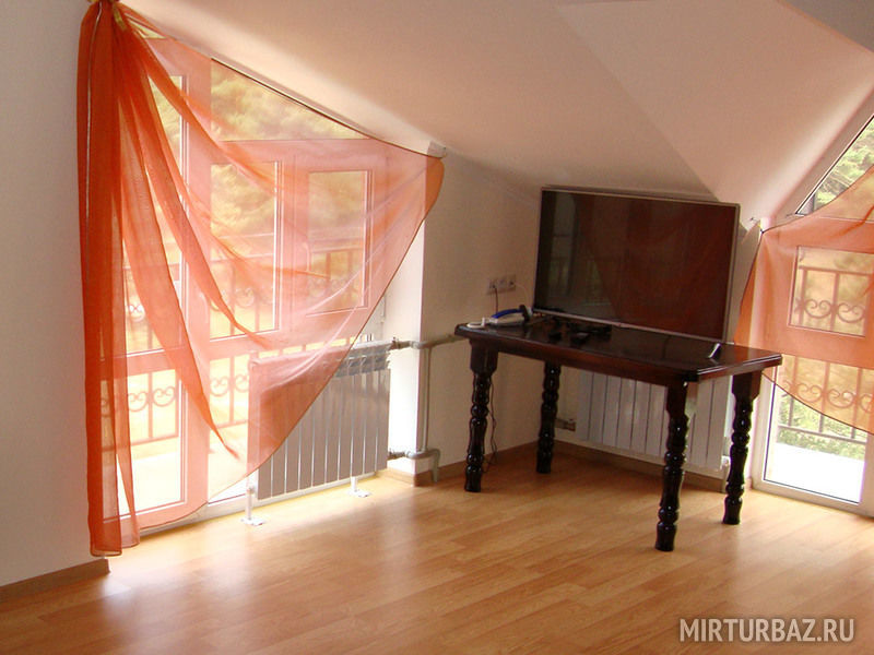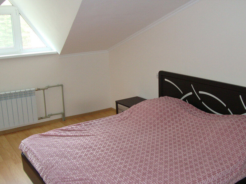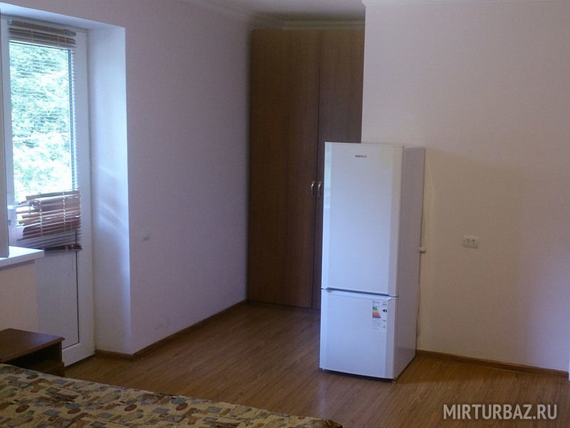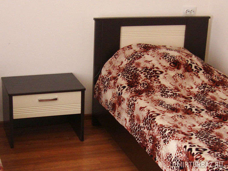 В номере две односпальные кровати, столик, прикроватные тумбочки. Удобства общие на улице.