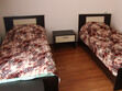 В номере две односпальные кровати, холодильник, стол, санузел.