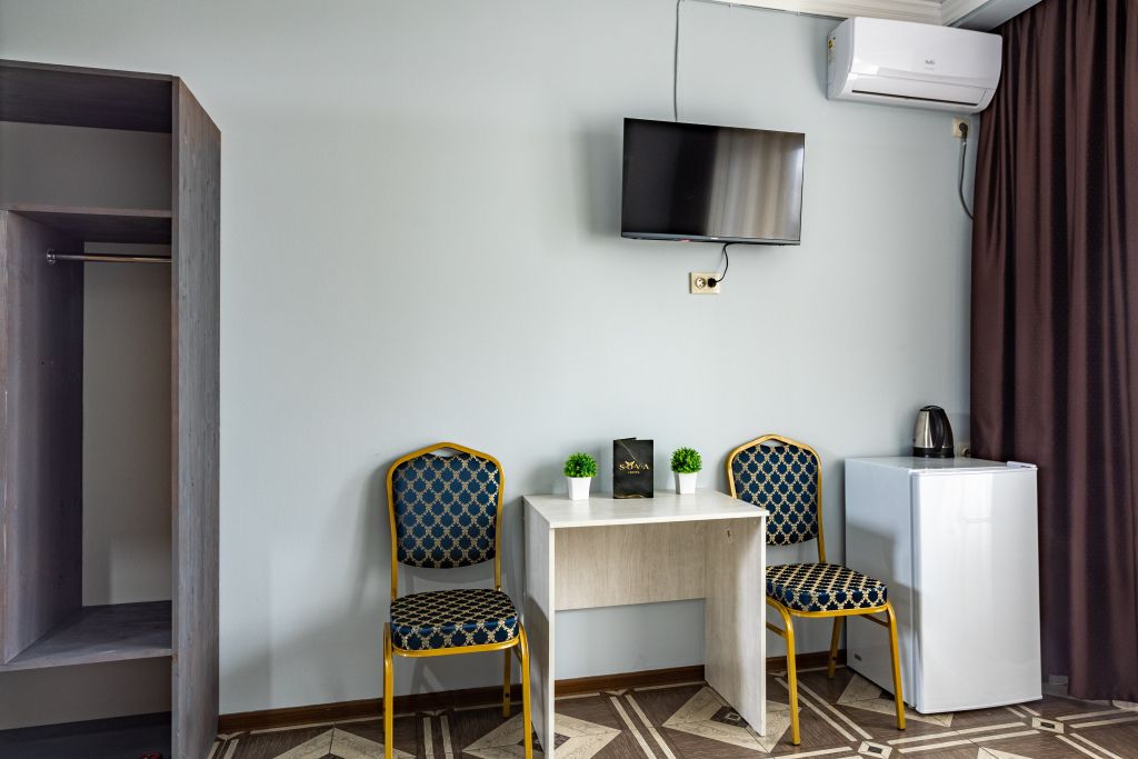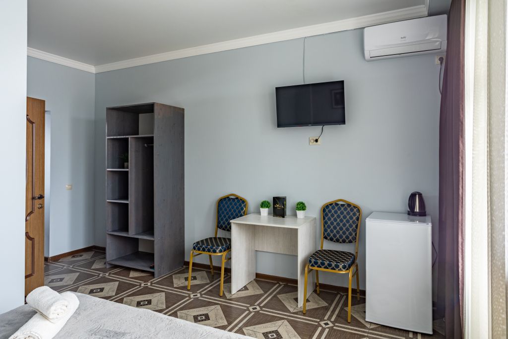 Всего в отеле 6 номеров. Номера оснащены всеми удобствами мебелью из натурального дерева (кровати 1.8 метров на 2 метра). Также в распоряжении гостей кондиционер, спутниковое и цифровое телевидение, бесплатный Wi-Fi. У каждого номера есть индивидуальный выход на балкон с видом на реку Терек.