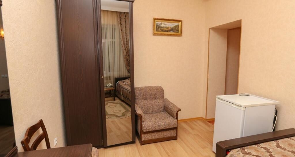 Путешествие с семьейСердце старого ВладикавказаГлавной изюминкой этого отеля является само здание которому 125 лет, оно великолепно передает атмосферу старого Владикавказа и находится в самом центре города, на пешеходной улице с множеством магазинов и ресторанов, но в тоже время, в номерах тихо., Шум с улицы не мешает отдыху. Просторные номера, обставленные со вкусом оснащены всем необходимым. Особенно хочется отметить великолепную уборку, наличие приятных бонусов от отеля( кока-кола в подарок).Информационный стенд на входе помогает лучше сориентироваться в маршрутах по Осетии.