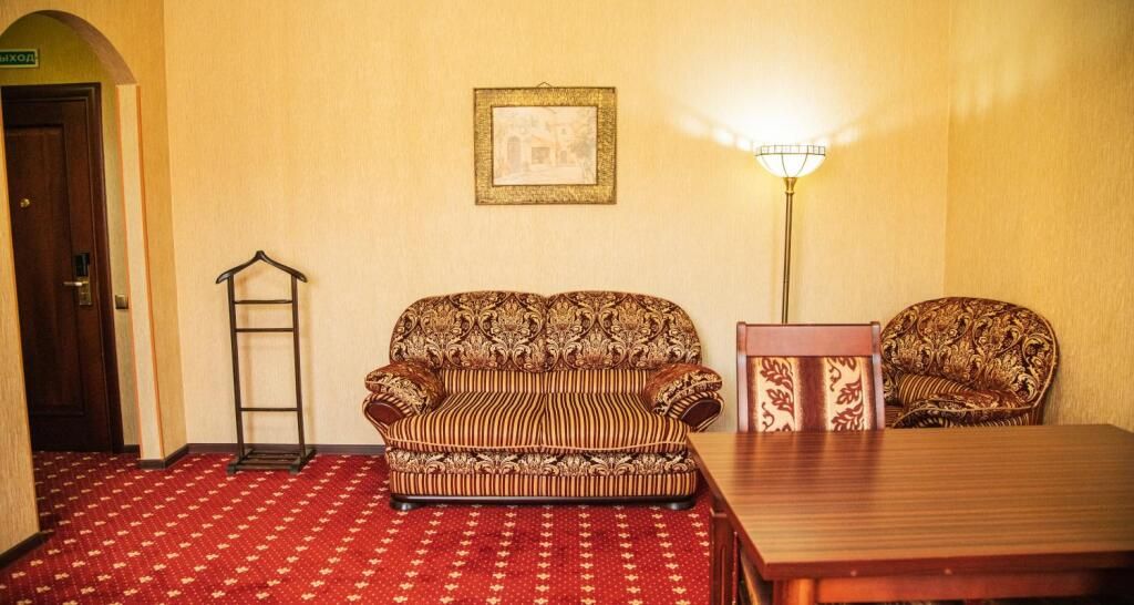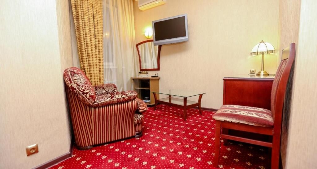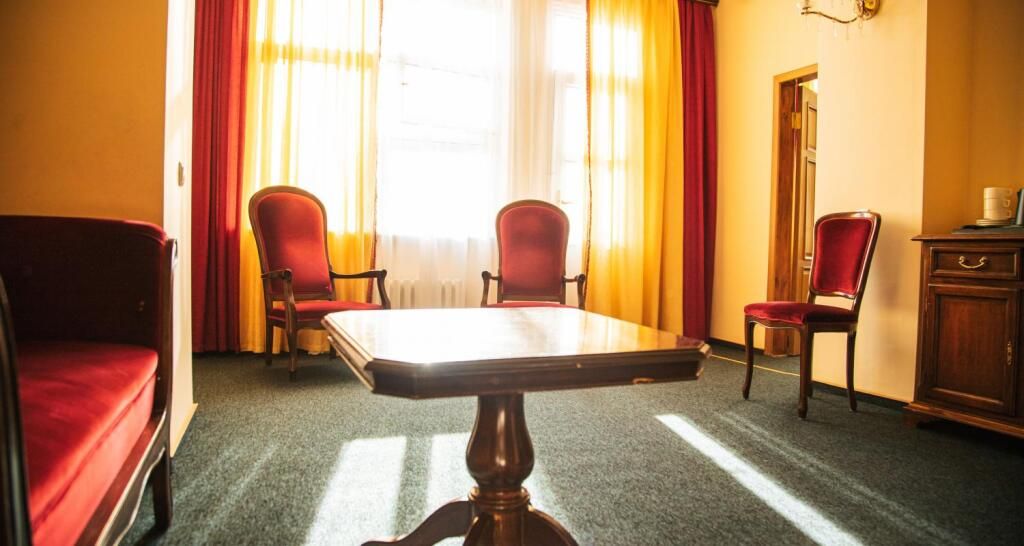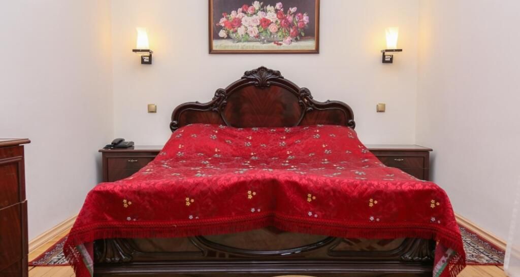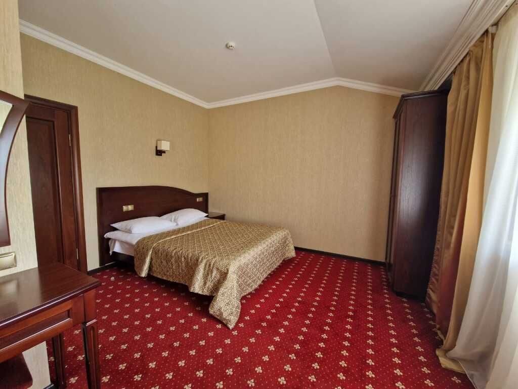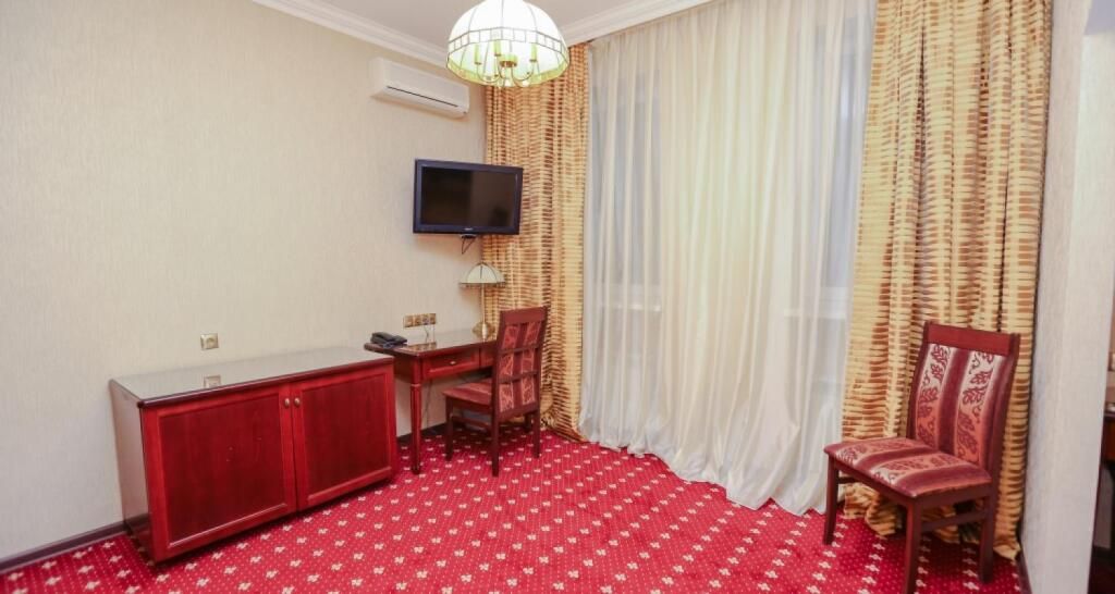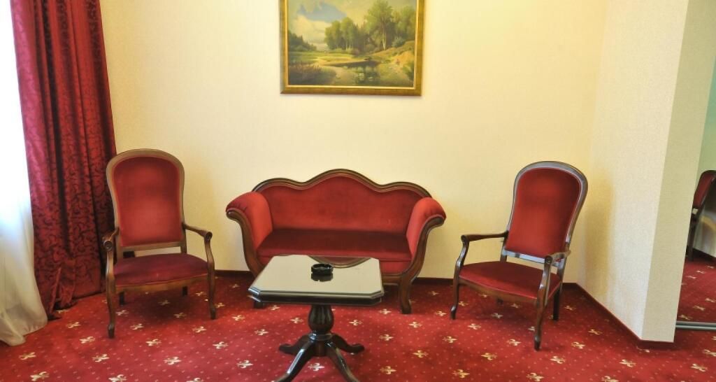 Отель разместился в трехэтажном историческом особняке, построенном в конце XIX века архитектором Марандовым в стиле эклектики. Гостей ожидают номера категории Стандарт, Бизнес, Люкс. В номерах классический интерьер, в котором используются благородные алые оттенки, качественная крепкая мебель, санузел с ванной и необходимая бытовая техника — кондиционер, телевизор, мини-холодильник.