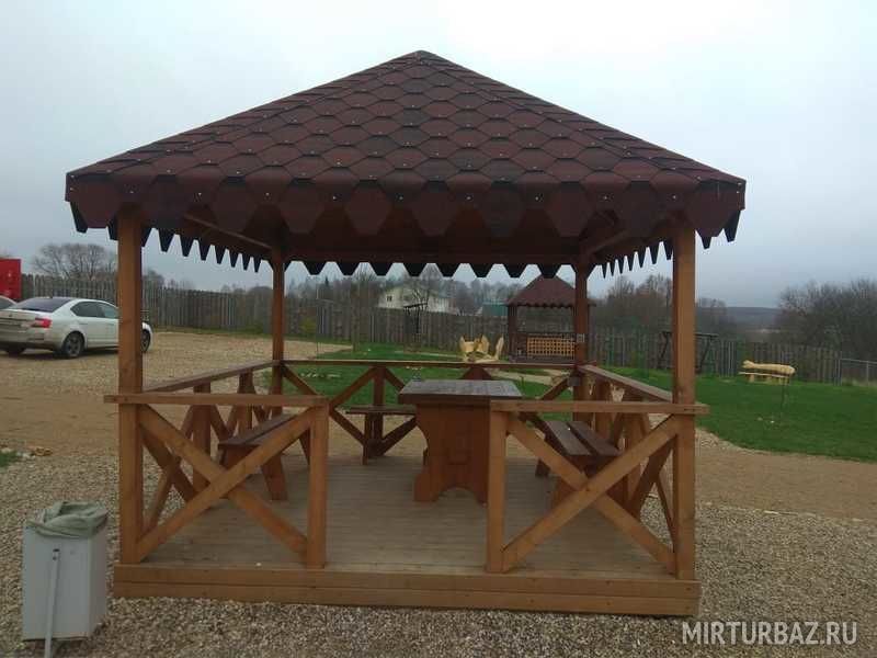 На территории имеется беседка где вы можете отдохнуть на свежем воздухе.