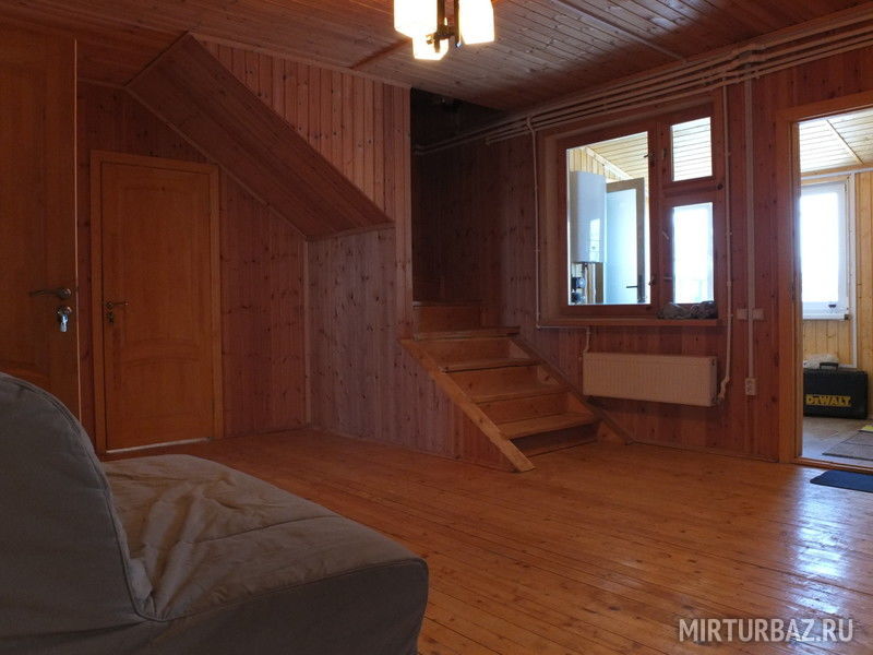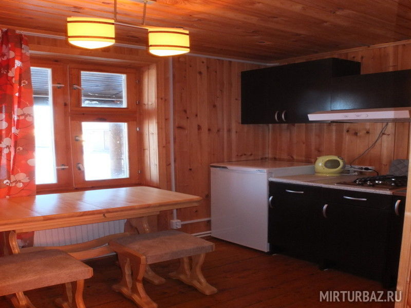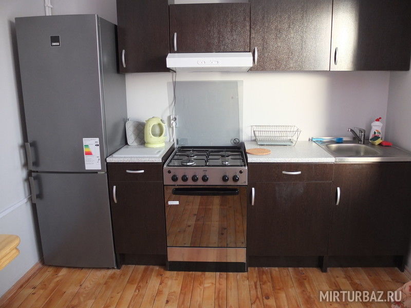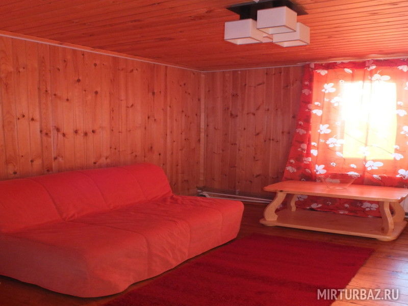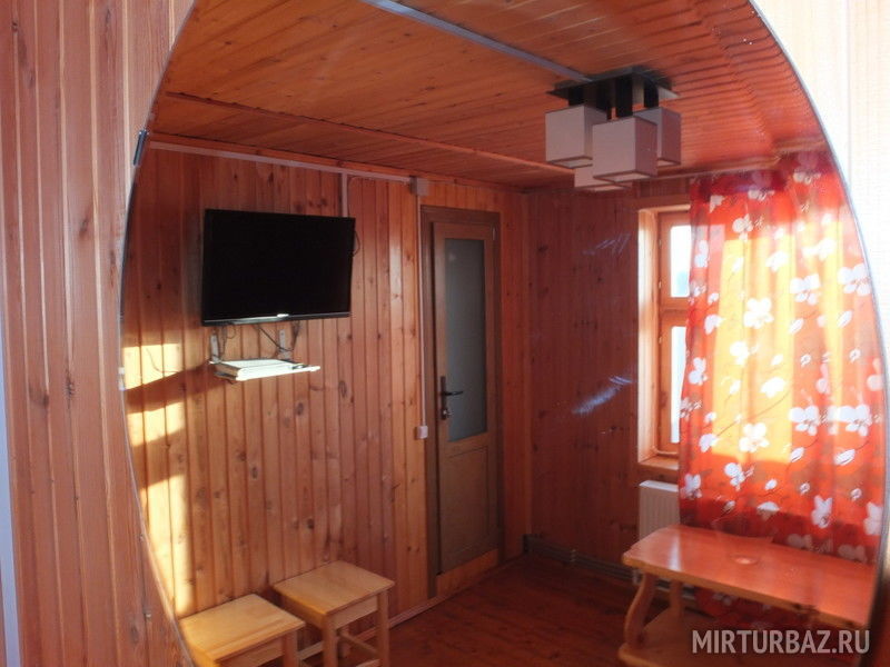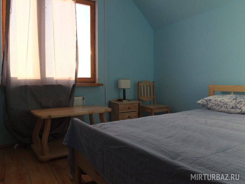 1-этаж: холл, санузел, кухня-столовая (стенка, плита, холодильник, посуда, ТВ), 2 номера с двуспальными кроватями, 2 номера с односпальной и двуспальной кроватью.