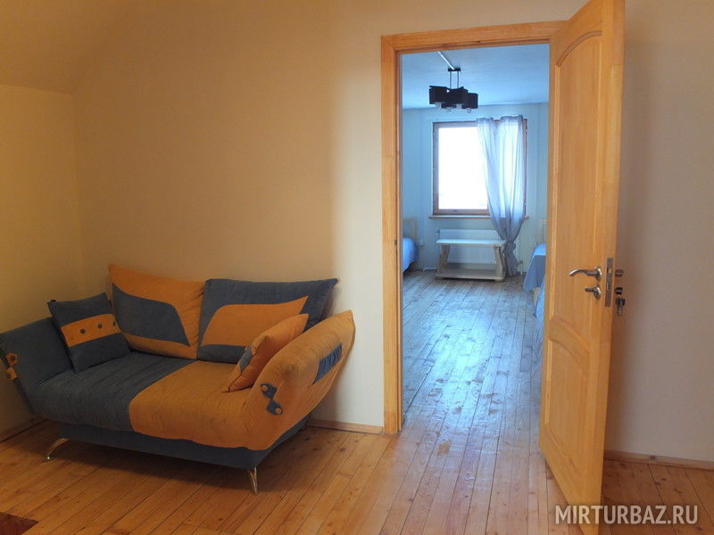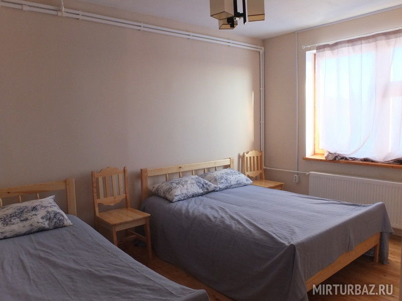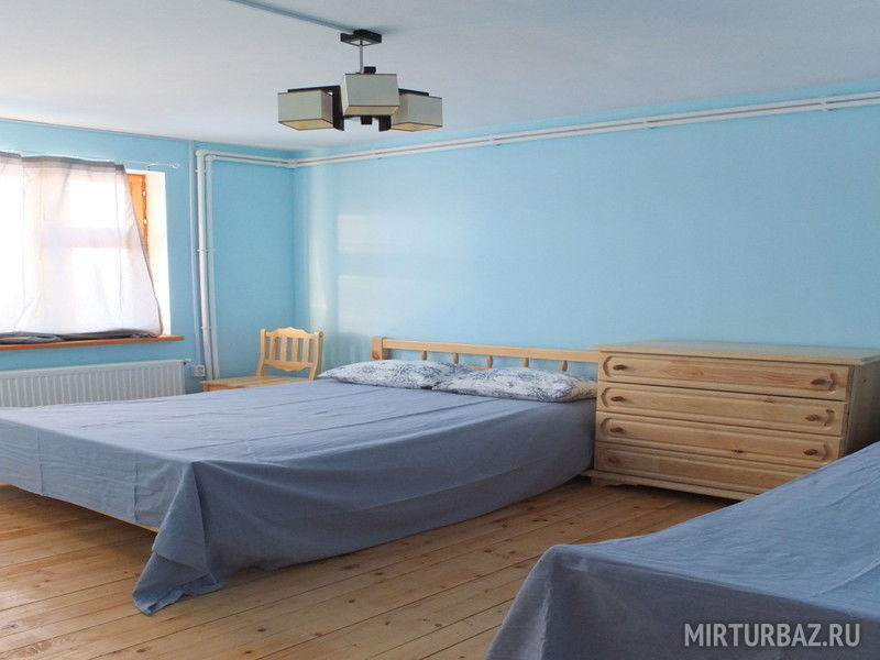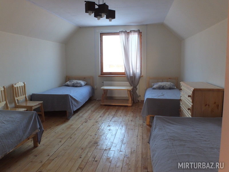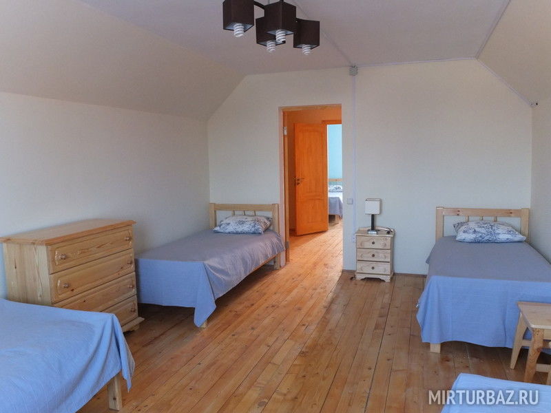 2 этаж: одна комната с односпальной и двуспальной кроватью, 1 комната с 4-я односпальными кроватями.