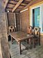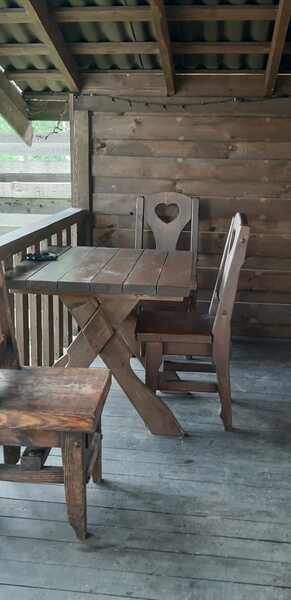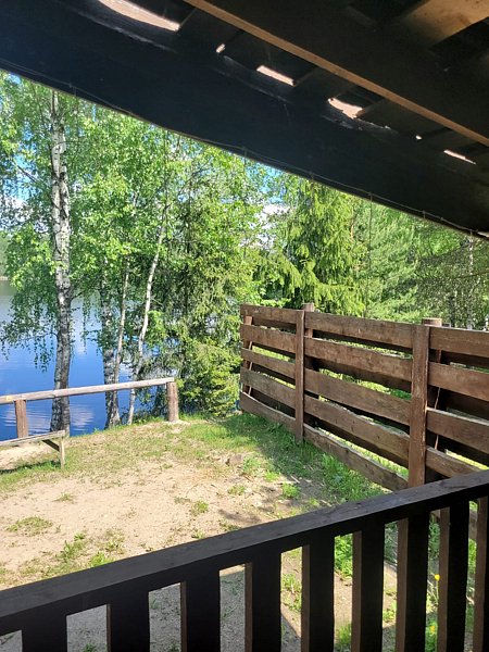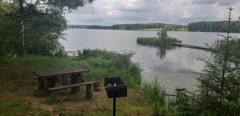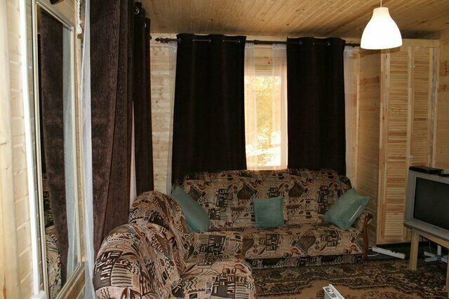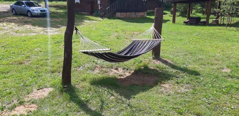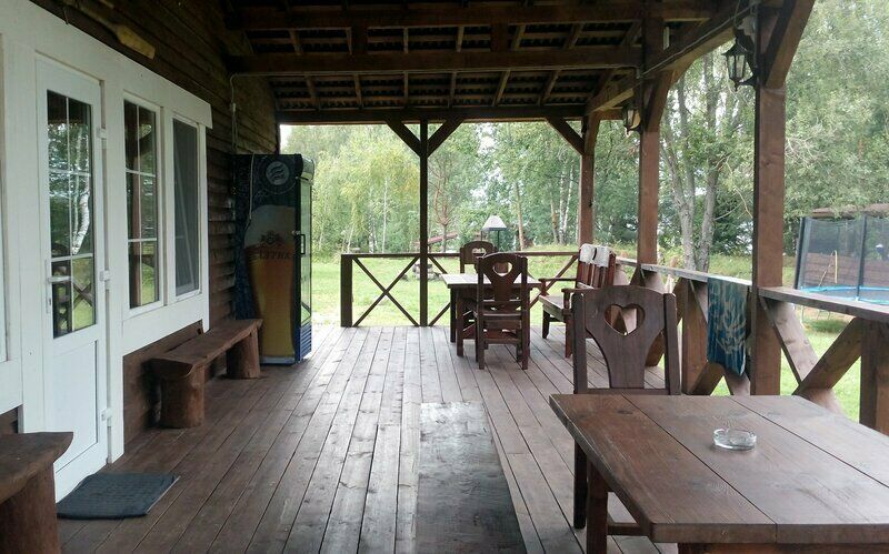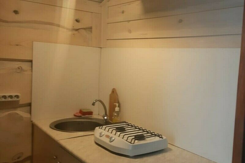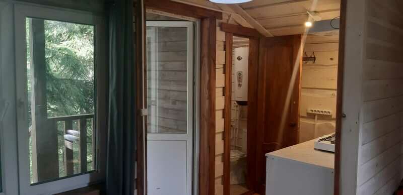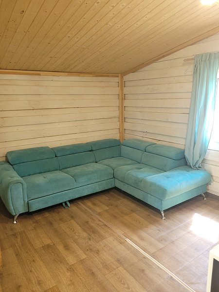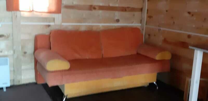 Дом студия с двуспальной кроватью и раскладным диваном. Есть кухонная зона с холодильником, микроволновкой и электрическим чайником.С/у в доме. Веранда с мангальной зоной.