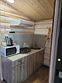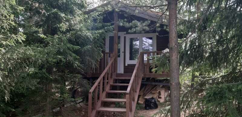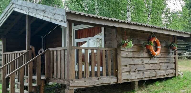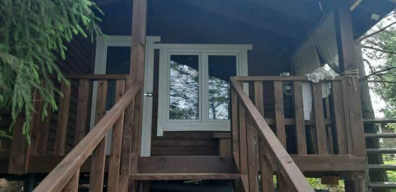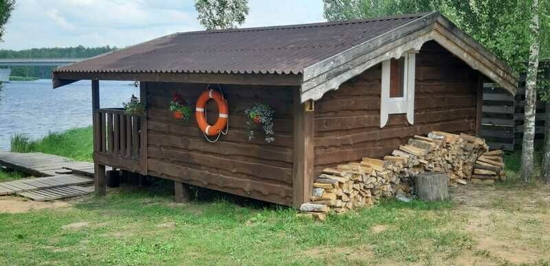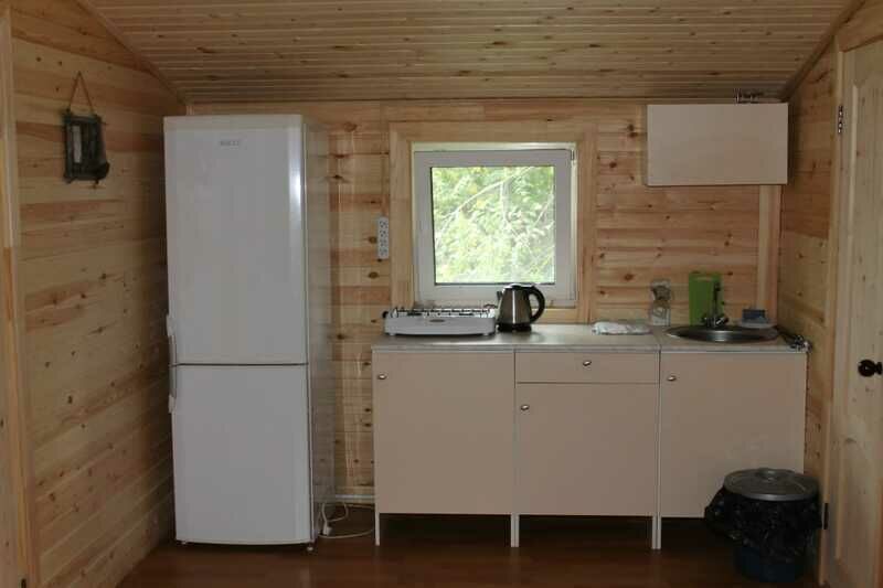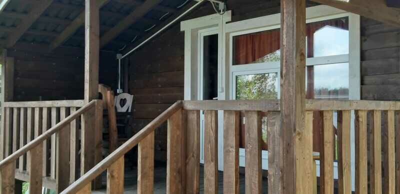 Дом студия с двуспальной кроватью и раскладным диваном. Есть кухонная зона с холодильником, микроволновкой и электрическим чайником. С/у в доме. Веранда с мангальной зоной.