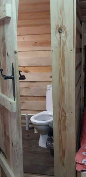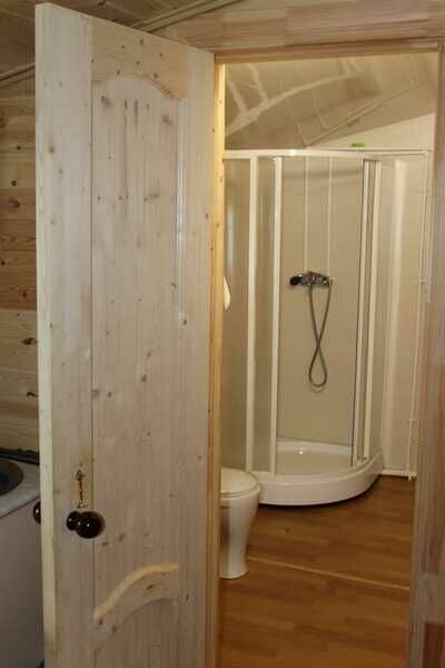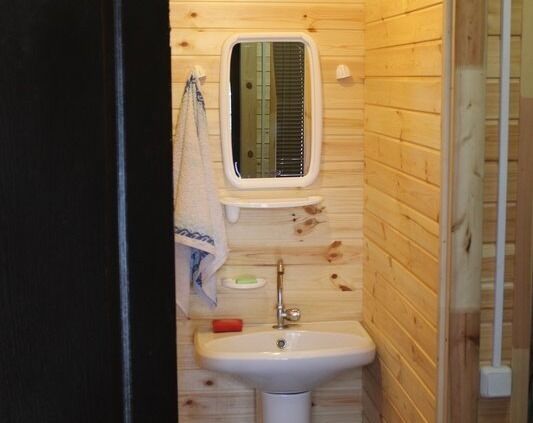 В любое время года домики для заселения порадуют вас теплом и уютом. Санузел без душа, с унитазом и раковиной.