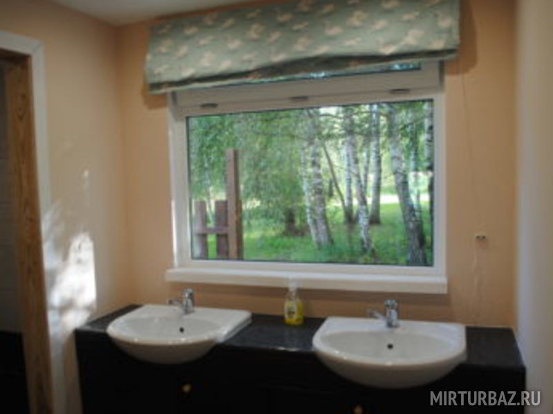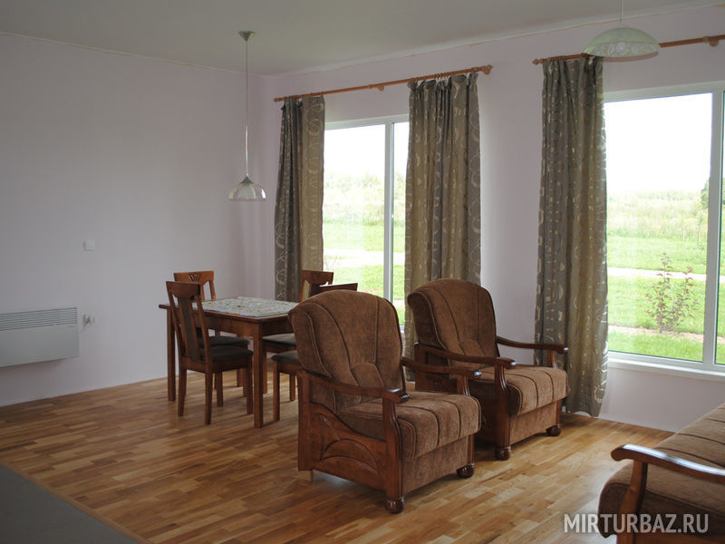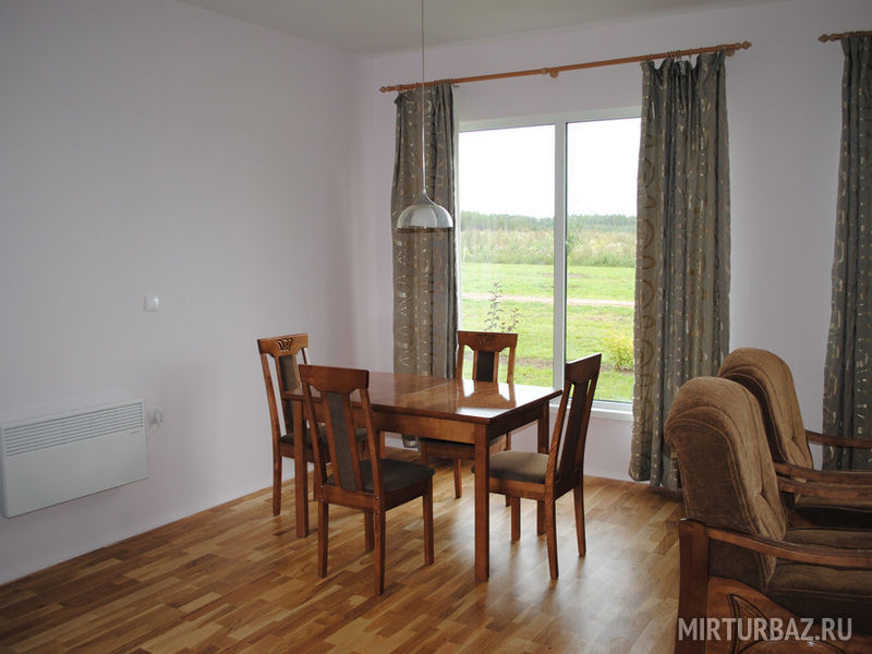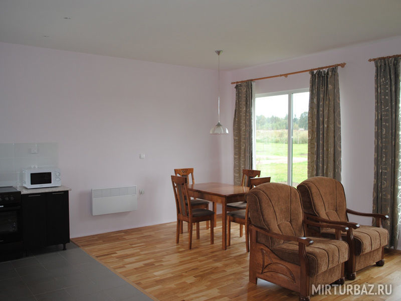 Большой, просторный коттедж с высокими потолками и огромными окнами прекрасно вместит семью или компанию из 4-6 человек.