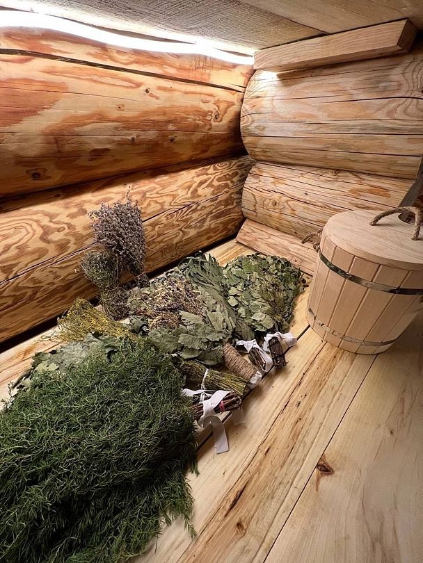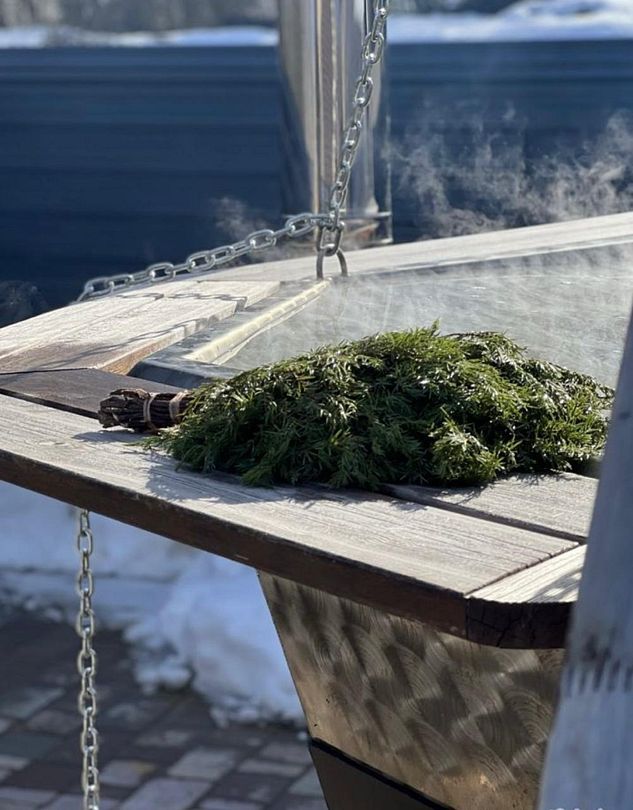 Банный комплекс — баня на дровах и банный чан с наполнением травами. Комплексная услуга для ценителей бани и парения с травами на открытом воздухе. Для компаний не более 8 человек.