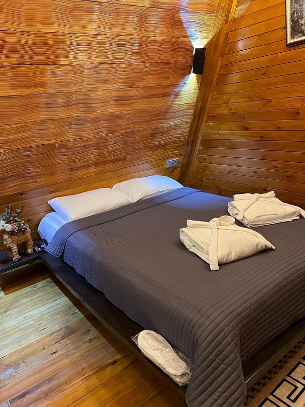 Для гостей предоставляются: халаты, полотенца, тапочки, гигиенические принадлежности для душа, зубной набор, чай, набор для завтрака, для мангала — уголь 3 кг, розжиг, шампура и решетка.
