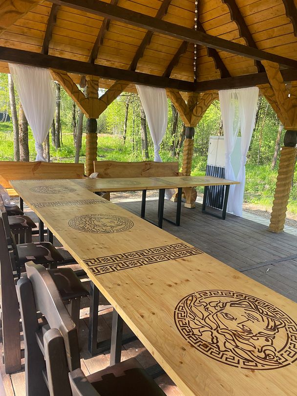 Читать полностьюБеседка открытого типа, подойдет как для небольшой компании, так и для компании до 25 человек. Вокруг беседки территория из брусчатки, есть место для установки звукового и прочего оборудования, и, конечно же, для танцев. Рядом с беседкой расположена зона для барбекю с мангалом, рабочей поверхностью и раковиной — удобно вымыть и нарезать продукты. Шампура, решетку, уголь и розжиг предоставляются за дополнительную плату.