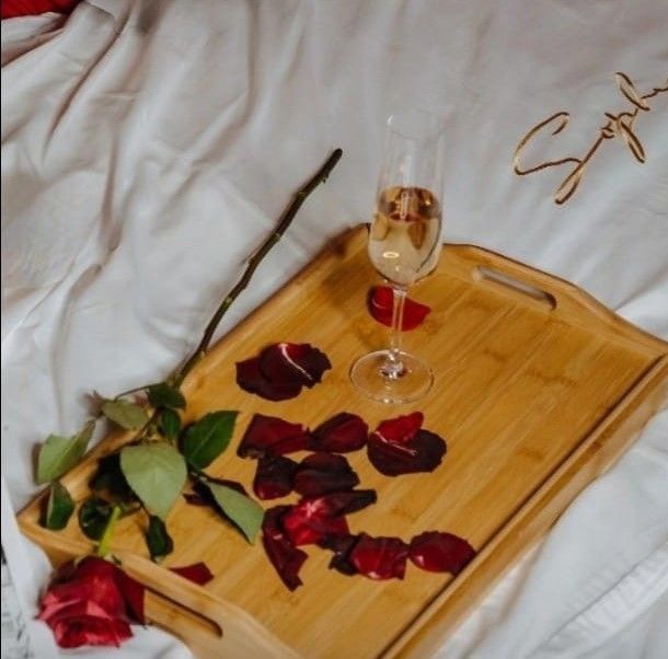 В услугу входят: букет цветов, лепестки роз, свечи, игристое вино, фрукты, конфеты, наполнение для ванной.