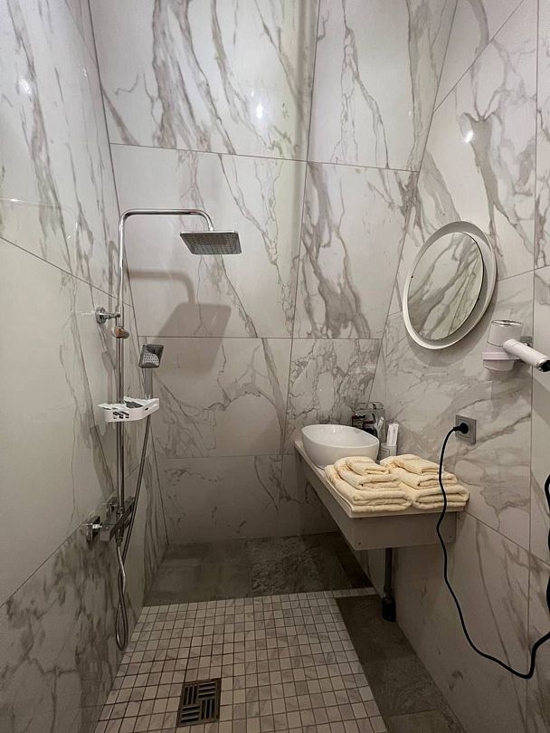 Для гостей без доплат будут предоставлены наборы — банная простынь, тапочки, шампунь и гель для душа в индивидуальной упаковке. Наборы предоставляются до 8 штук, для большего количества гостей есть возможность докупить набор или необходимые принадлежности отдельно.