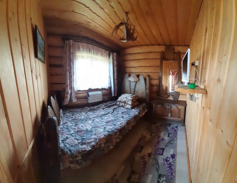 Проживание с пт по вс. Дом со всеми удобствами (вместимость 10 человек, 5 полутороспальных кроватей) и интерьером, выполненном в охотничьем стиле, расположен на территории базы отдыха Извозки площадью 5 га, в живописном, уединенном месте на берегу озера с собственным пляжем и парковкой.