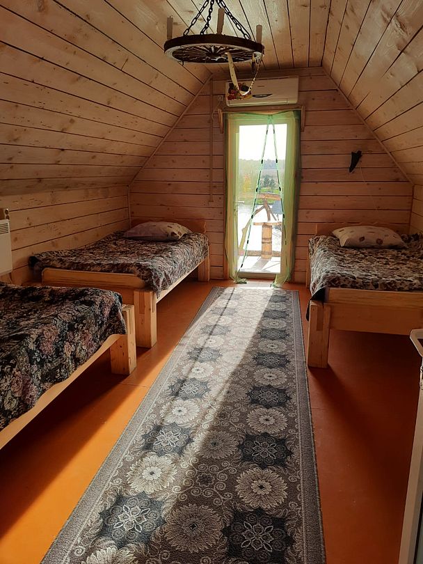 Комфортабельный дом на 10 человек с собственной кухней и санузлом. 4 полутороспальных кровати и 2 односпальных.