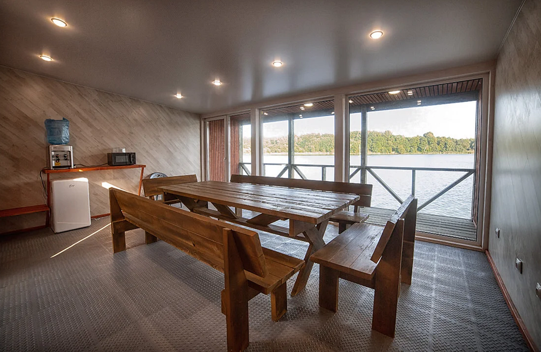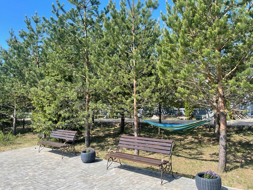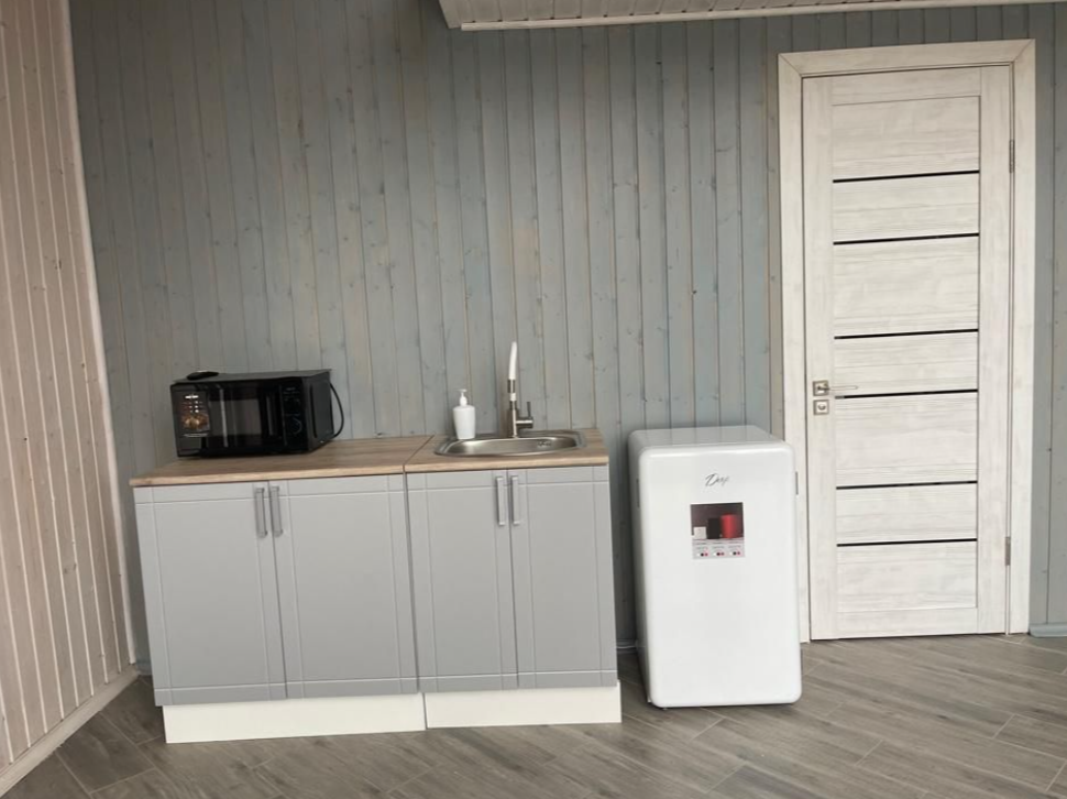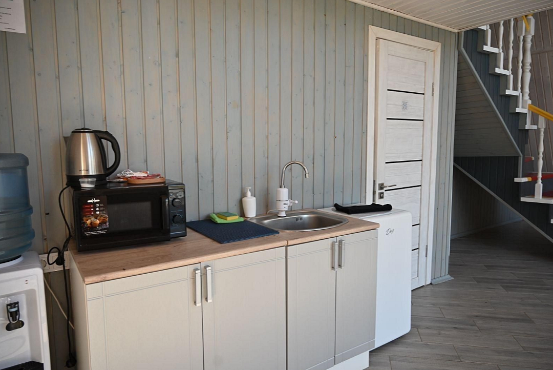 К услугам гостей четыре уютных деревянных домика и один просторный, идеально подходящий для больших компаний. Общая вместимость базы — 30 человек. Дома оборудованы всем необходимым для комфортного проживания, на кухне есть микроволновая печь, холодильник, телевизор, вся необходимая посуда и индукционная плита., а рядом с каждым домиком — собственная мангальная зона.