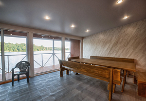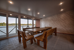 Банкетный зал «Подснежники» — это идеальное место для проведения свадеб, юбилеев и корпоративов. Он расположен на берегу озера, в окружении сосен, что создает атмосферу уюта и спокойствия. Вместимость — 25-90 человек.